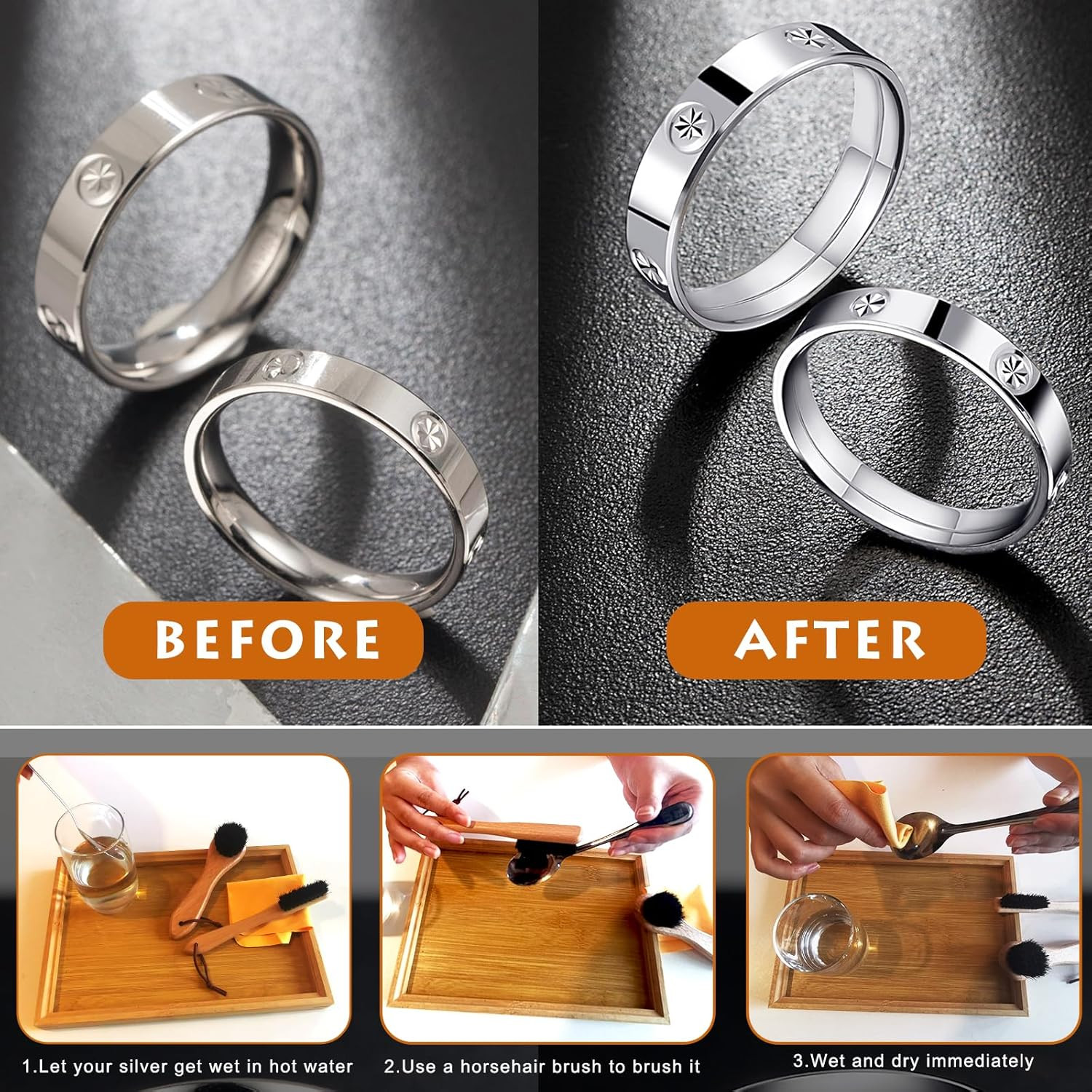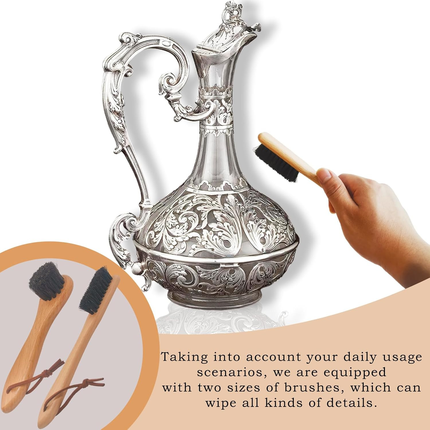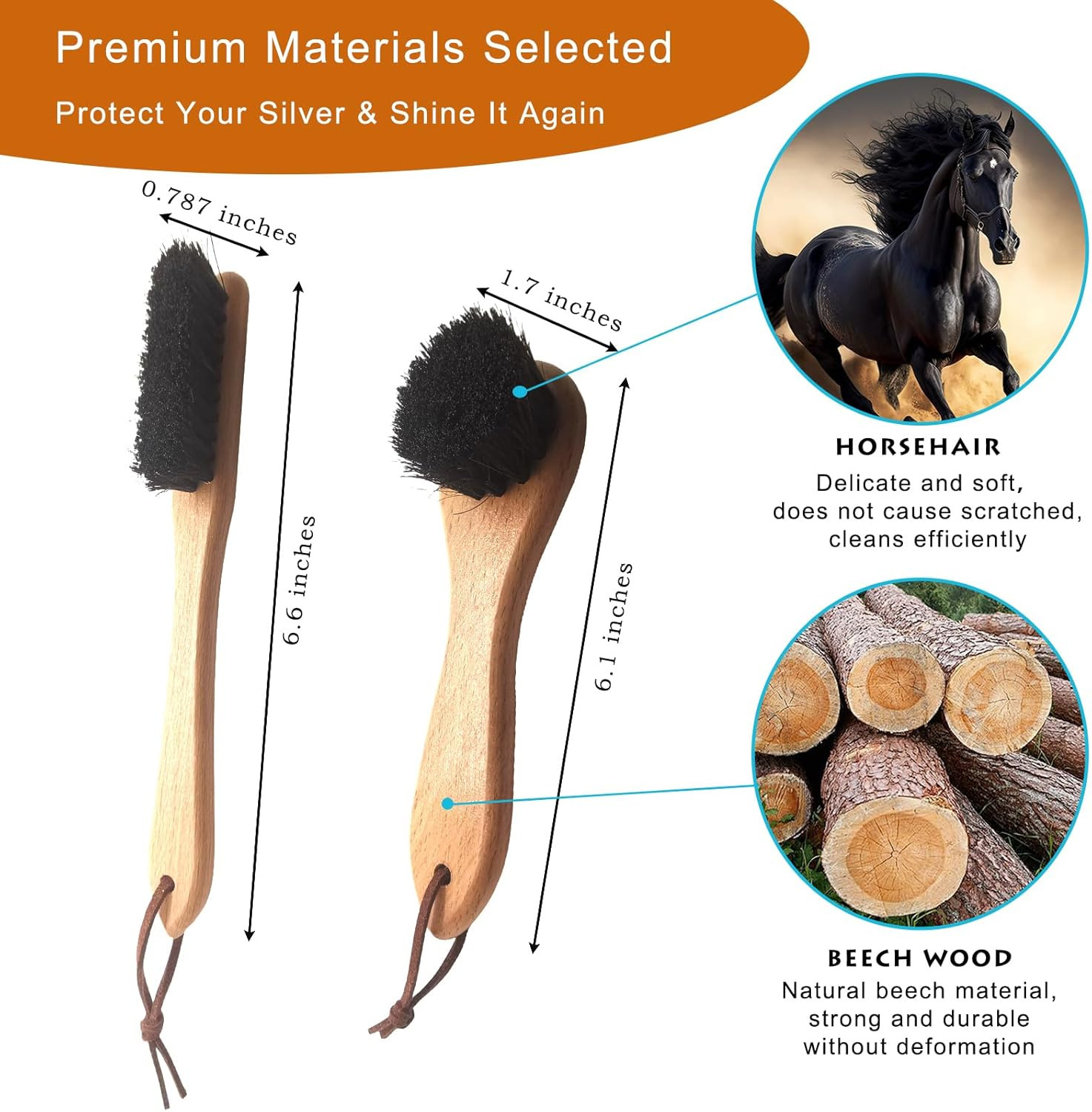 • Horsehair Silver Brush, 2 Pack Detailing Brush Set for Silverware, Jewelry Clean