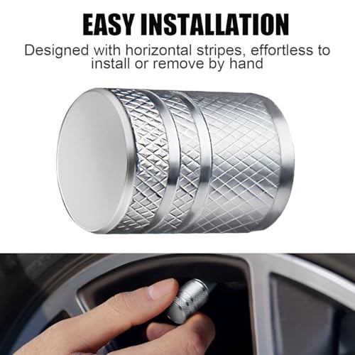 Tire Valve Stem Caps - 4 Pack Premium Metal Air Caps with Universal Silver