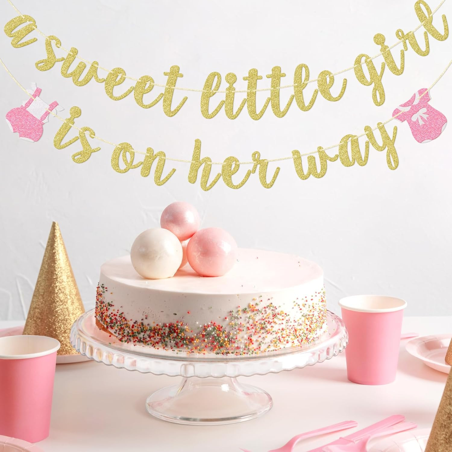 как выглядит A Sweet Little Girl Is on Her Way Banner, Sweet Little Girl Baby Shower Decorati фото