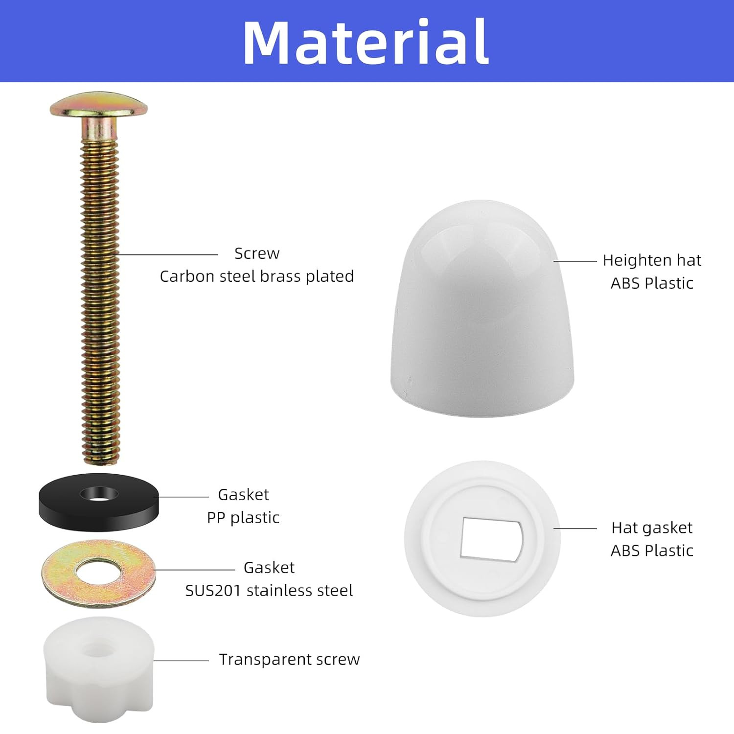 2 PCS Universal Toilet Floor Bolts and Caps Set, Solid Brass, 1/4-20, Hex Head,