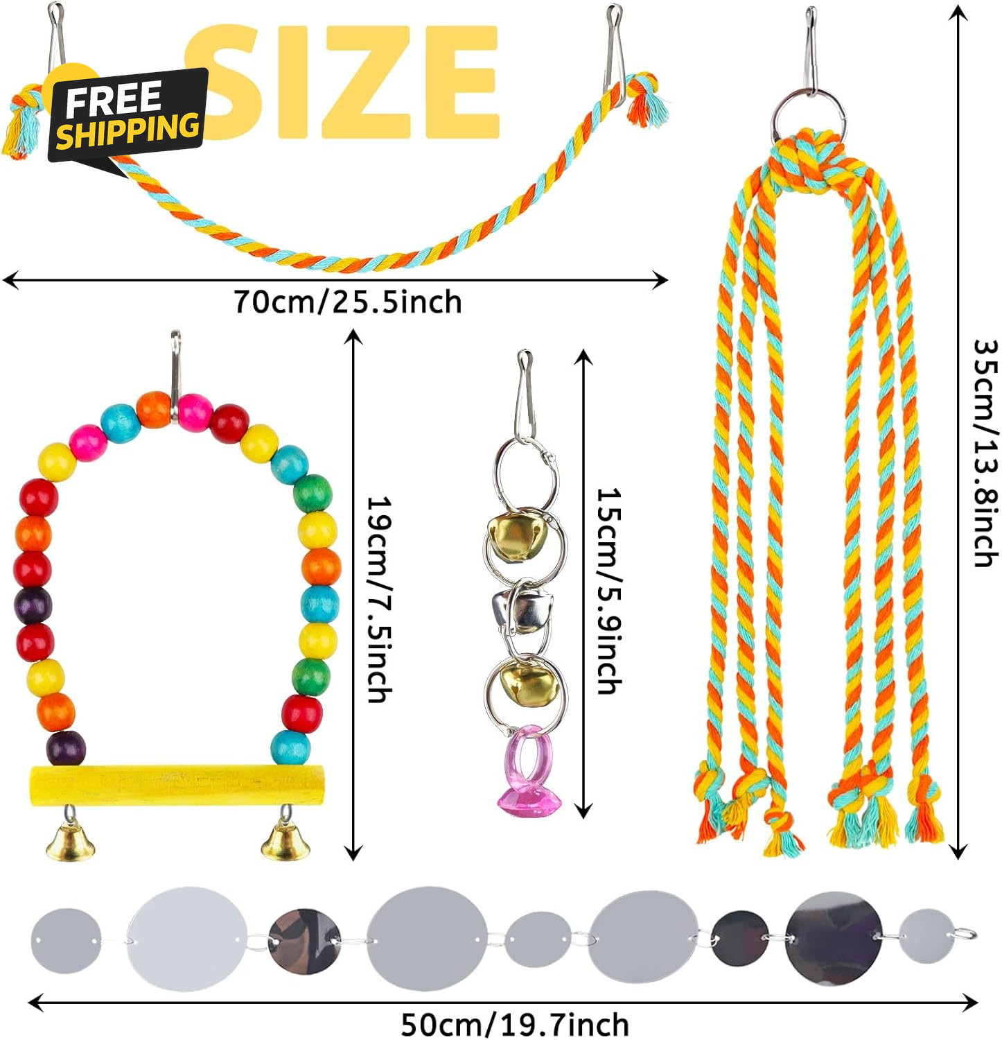 как выглядит 8 Pcs Bird Toys for Parakeets with Colorful Ladder Hammock Bird Cage фото