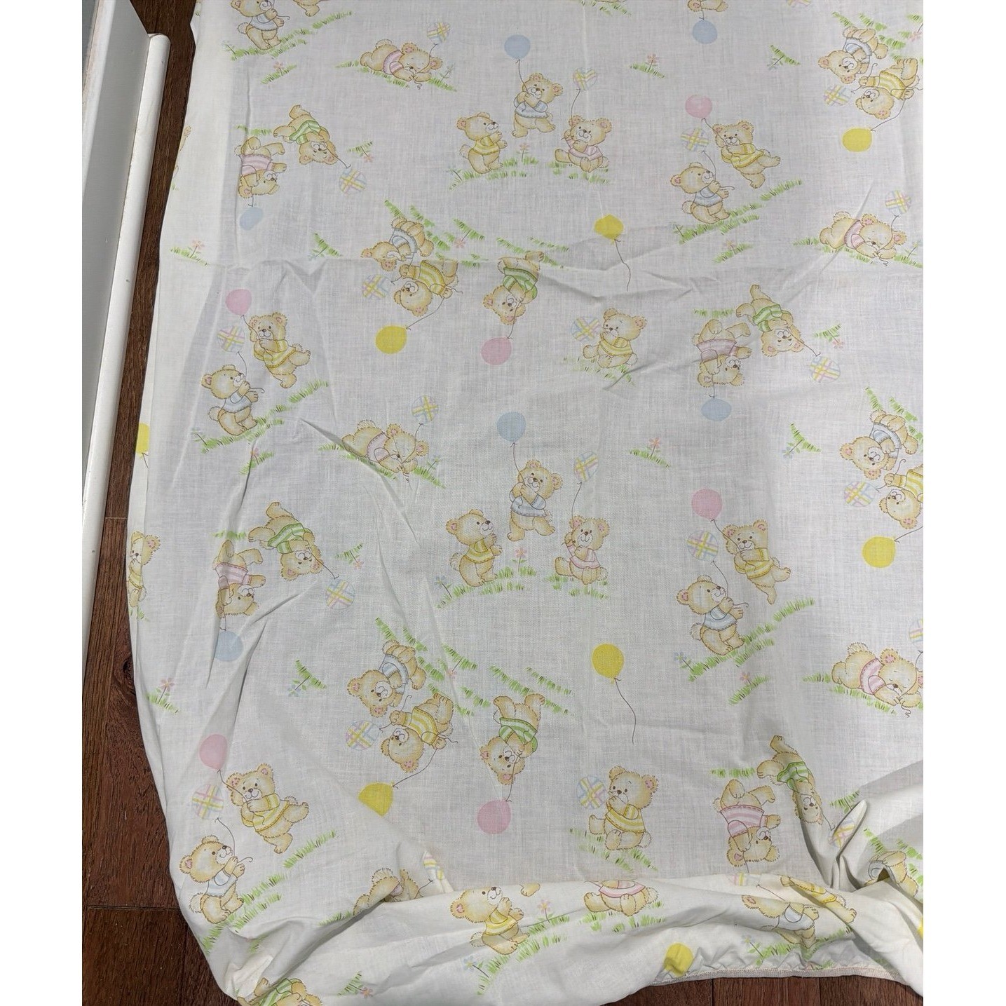 Vintage Crib Sheet Teddy Bears Balloons Fitted