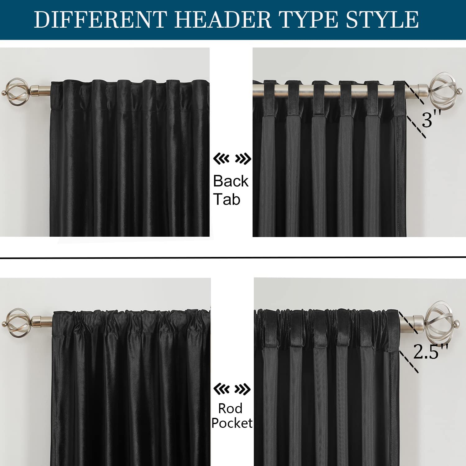 как выглядит PRIMROSE Black Curtains 63 inch for Living 52"W x 63"L Pack of 2 , фото