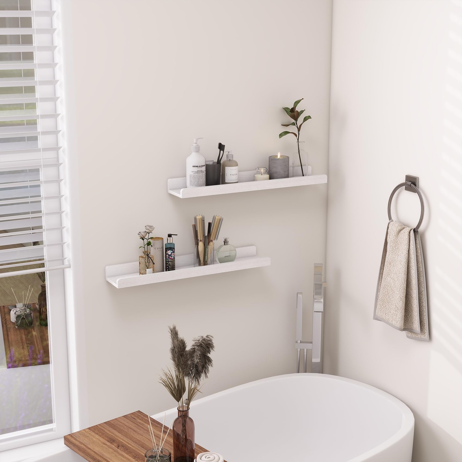 как выглядит White Floating Shelves for Wall - Wood Picture Ledge Shelf Set of 2 - Wood Fl... фото