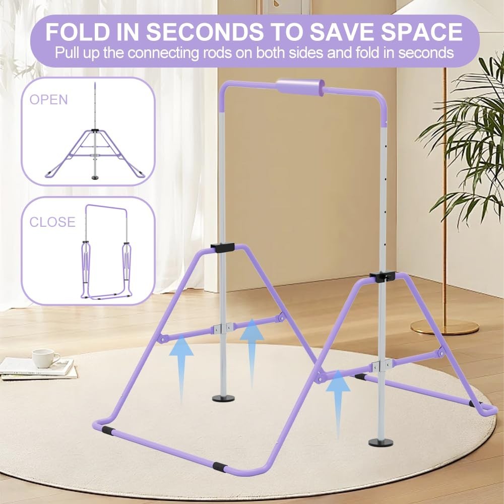 Expandable Gymnastics Bar,Adjustable Height Junior Training Kip Bar,Purple- SALE