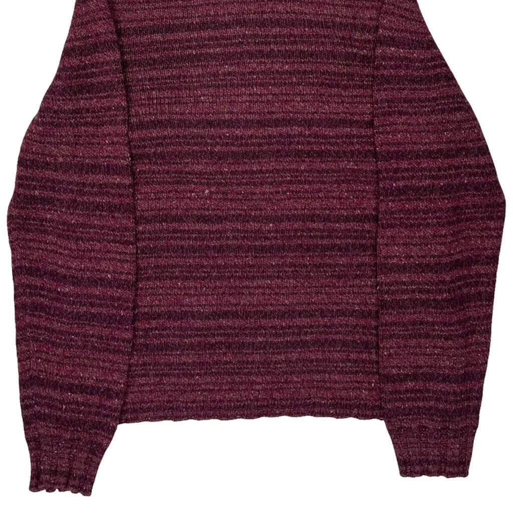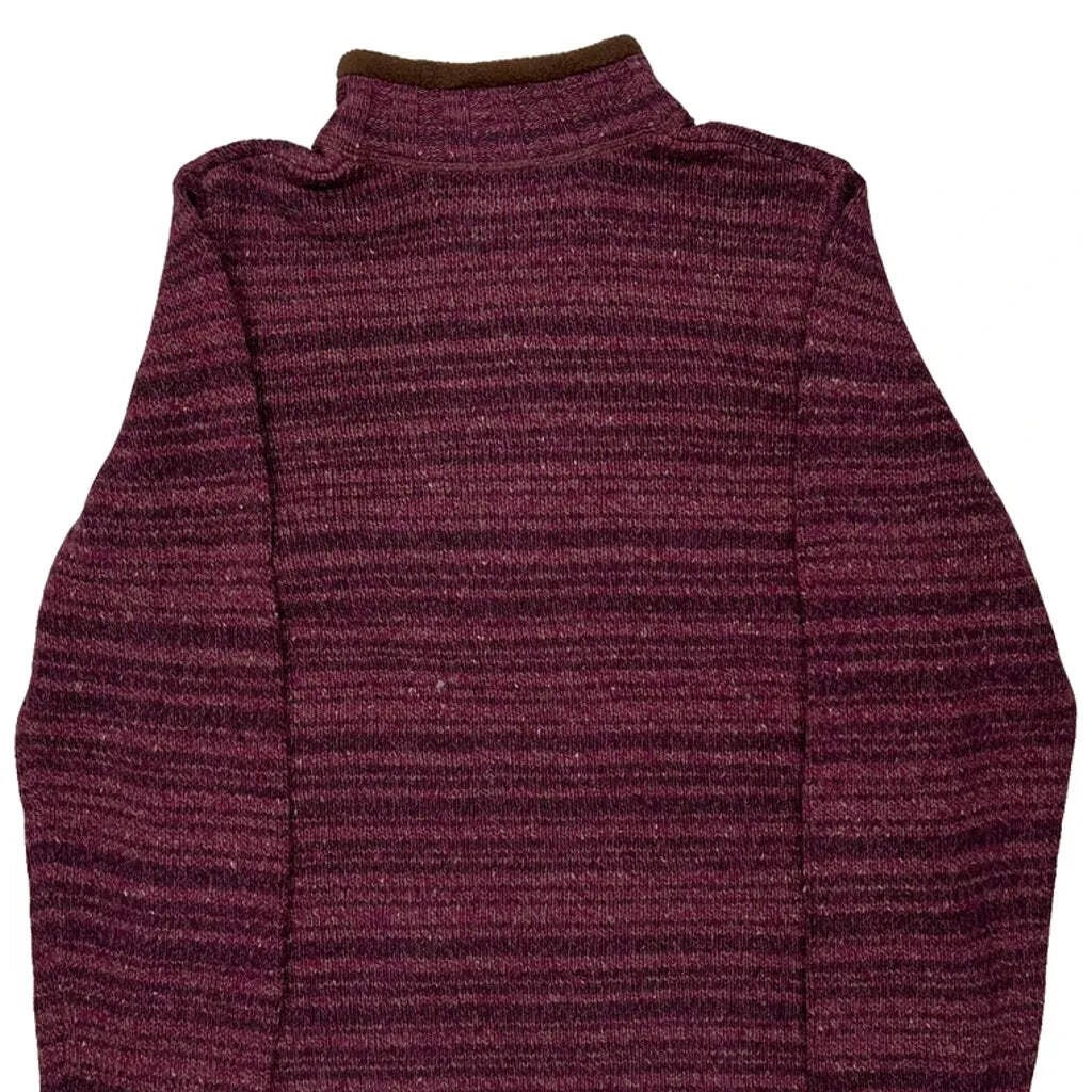 Woolrich Striped 1/4 Zip - Large Brown Wool Blend