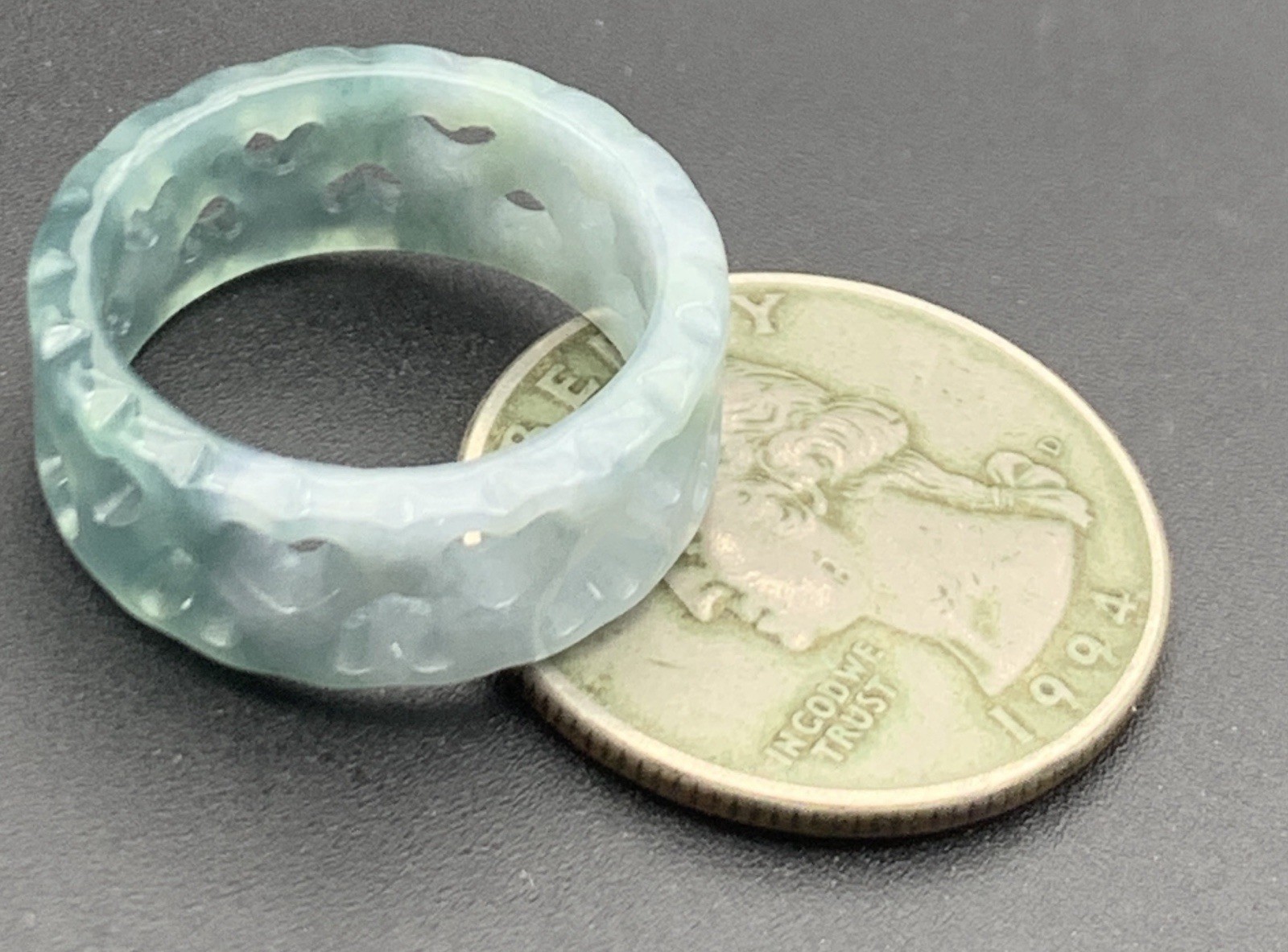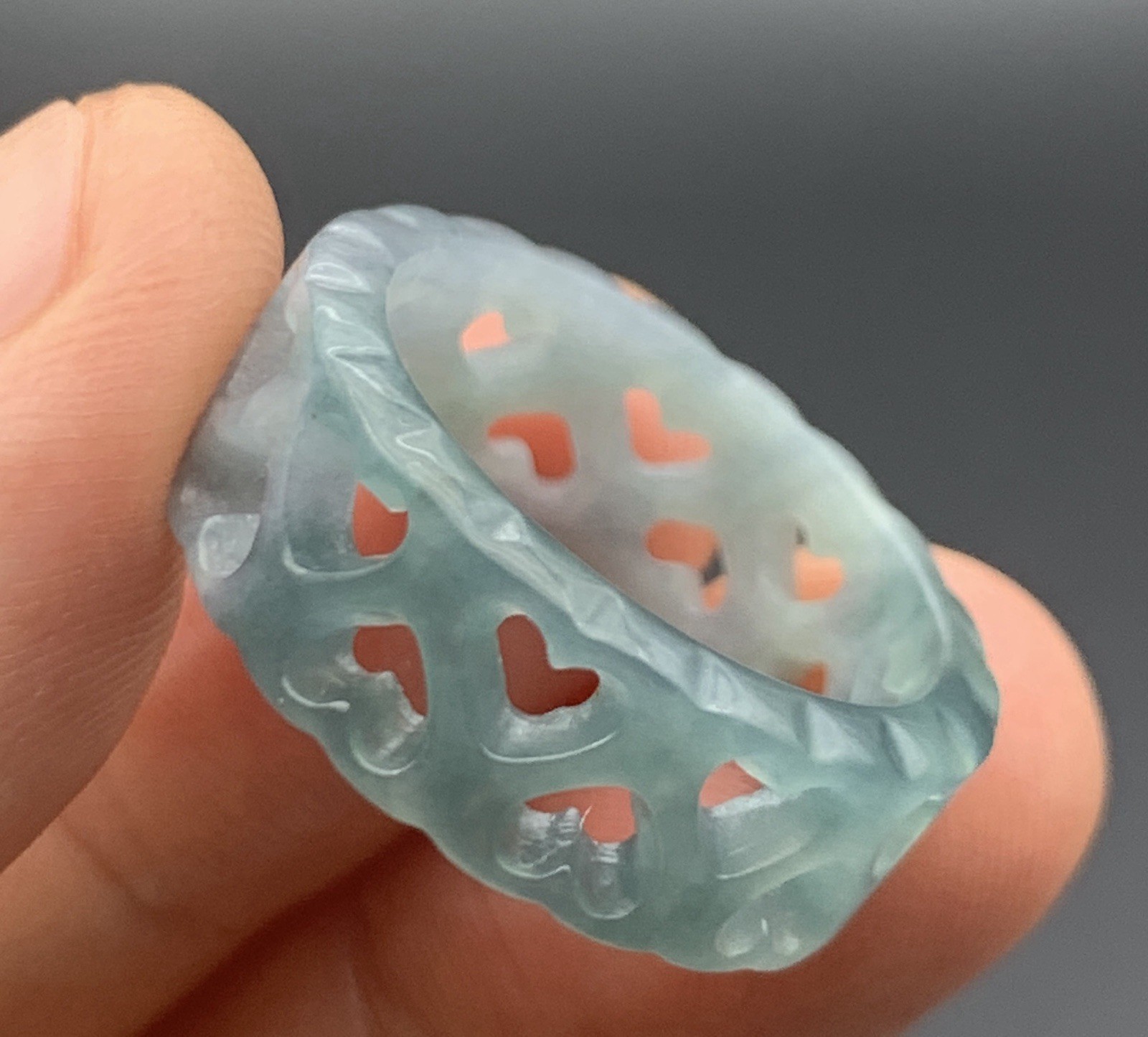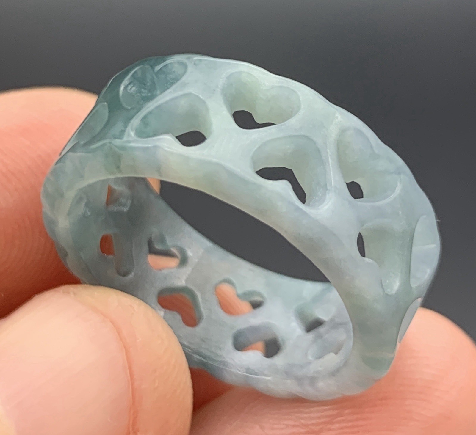 Video Certified Green A Jadeite Jade Love Heart Circle Ring NO. 7.75 420120