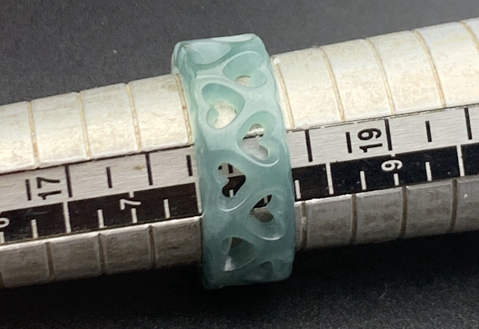 как выглядит Video Certified Green A Jadeite Jade Love Heart Circle Ring NO. 7.75  420120 фото