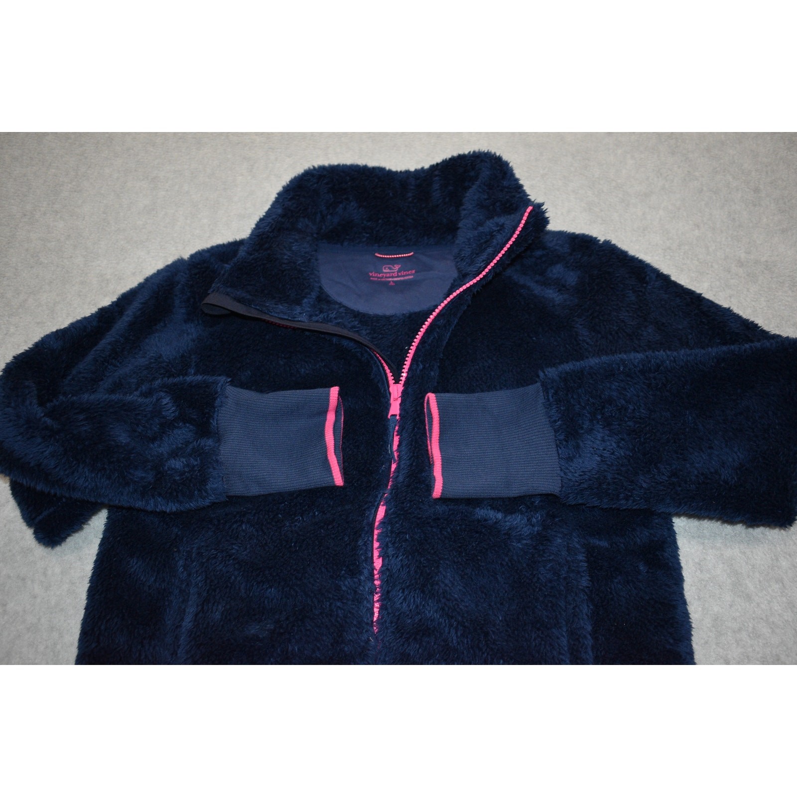 Vineyard Vines Plush Fleece Jacket Girls Kids Size Large 14 Blue Pink