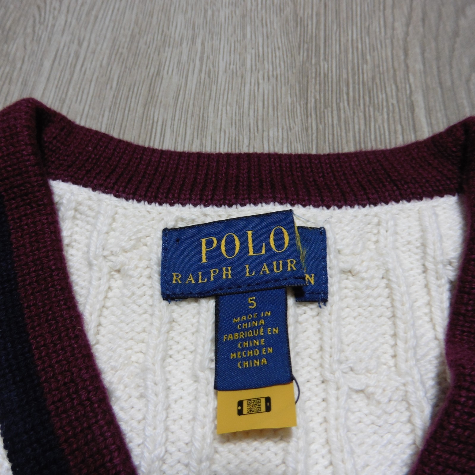 как выглядит Polo Ralph Lauren Girls 5 Cable Knit Cardigan Sweater Cream Navy Burgundy LS фото