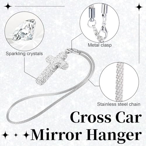 Cross for Car Mirror Hanging, Bling Cars Pendant Charm, Double-Sided White