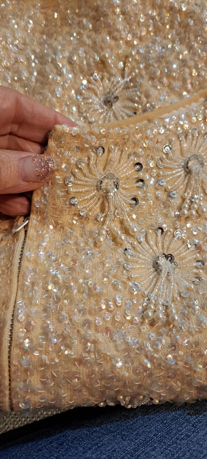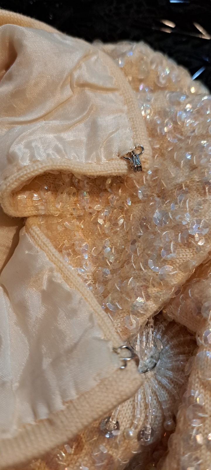 как выглядит Vtg 60s Sequins Bead Shell Top Blouse 40 Hong Kong Large Fringe Off White фото