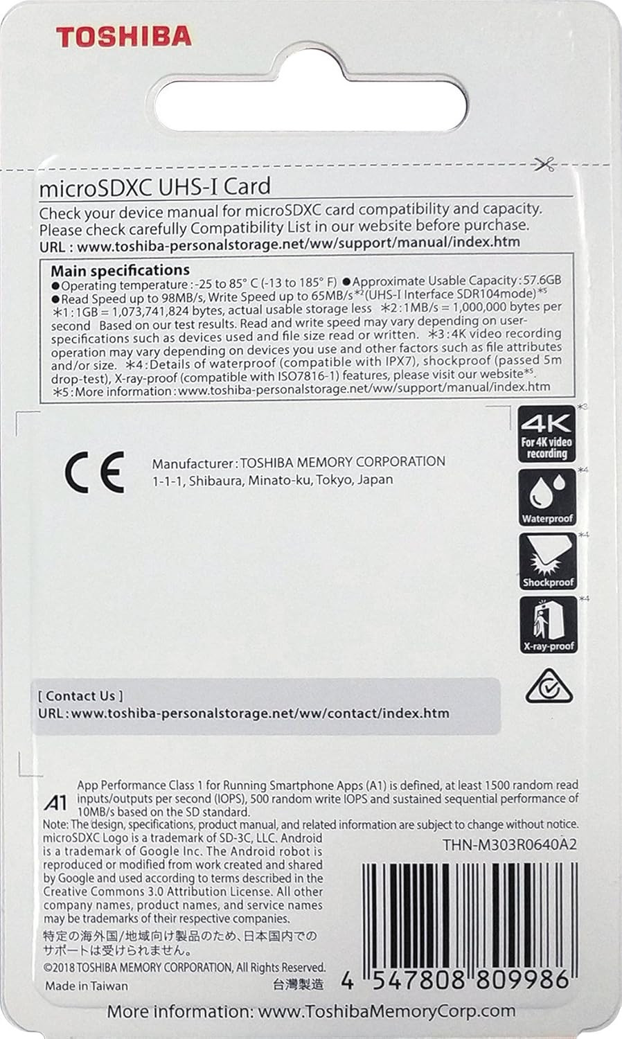 64GB 64G EXCERIA M303 with SD Adapter Microsdxc UHS-I U3 Card 4K Class10 V30 A1