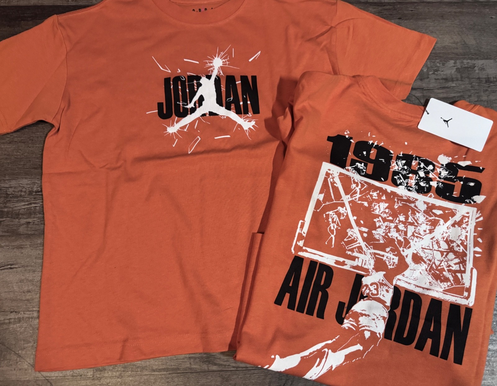NWT Nike Air Jordan Boys YSM Black/Burnt Orange/White Jogger Pants Set Small