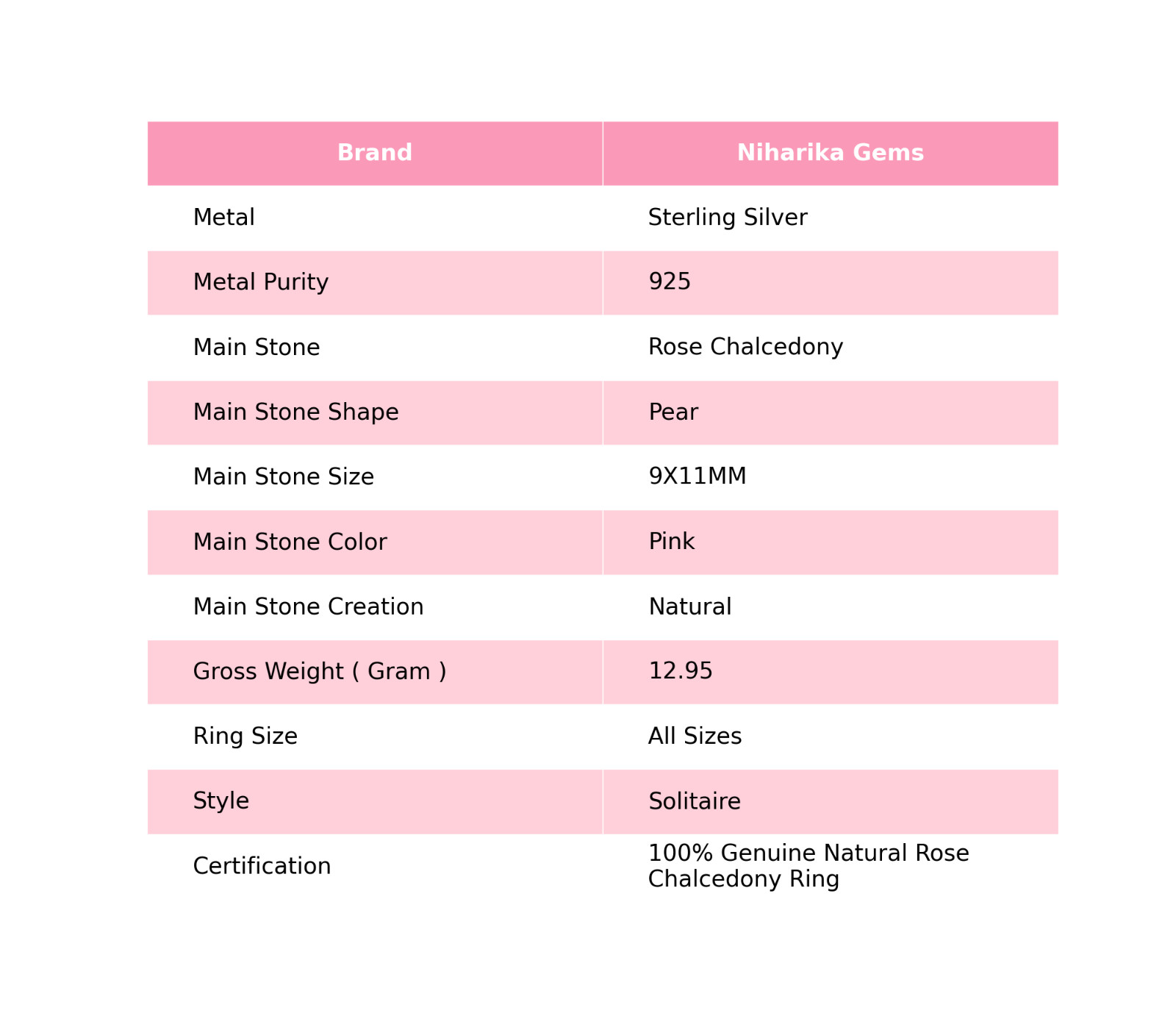 Certification: 100% Genuine Natural Rose Chalcedony Ring