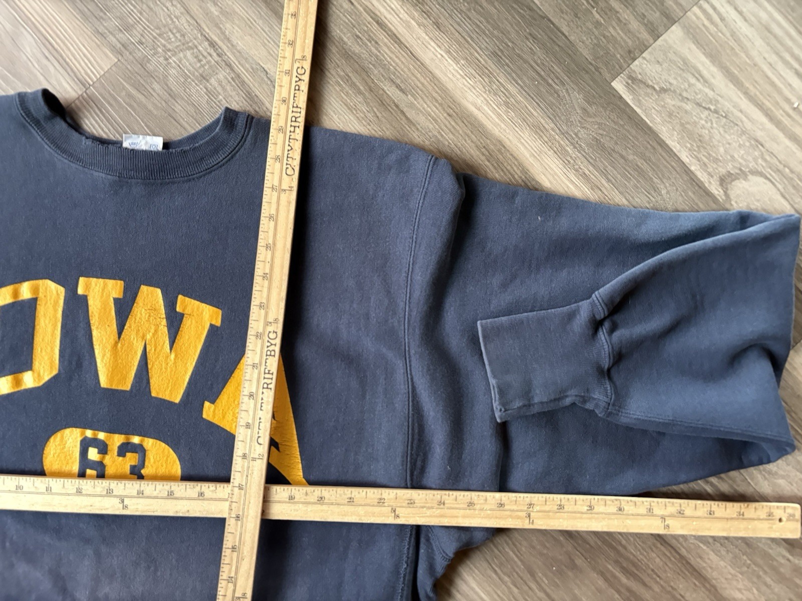 как выглядит 90 s VTG Champion Iowa Reverse Weave Crewneck Size XL Sun Faded Blue Vintage фото