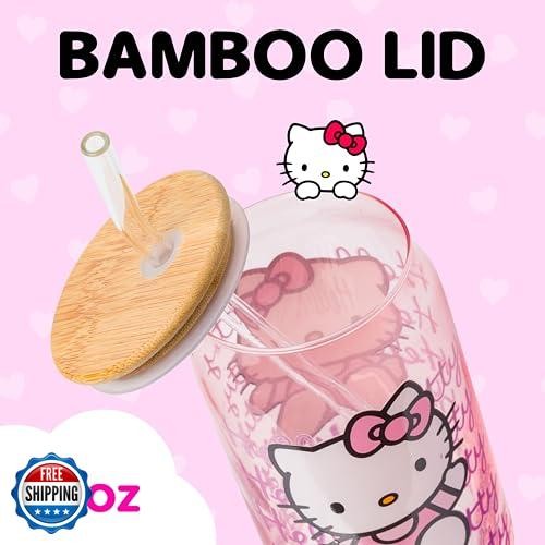 • Silver Buffalo Sanrio Hello Kitty Waving Pink Glass Jar Tumbler w