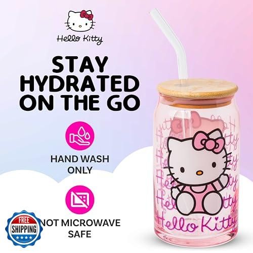 Silver Buffalo Sanrio Hello Kitty Waving Pink Glass Jar Tumbler w