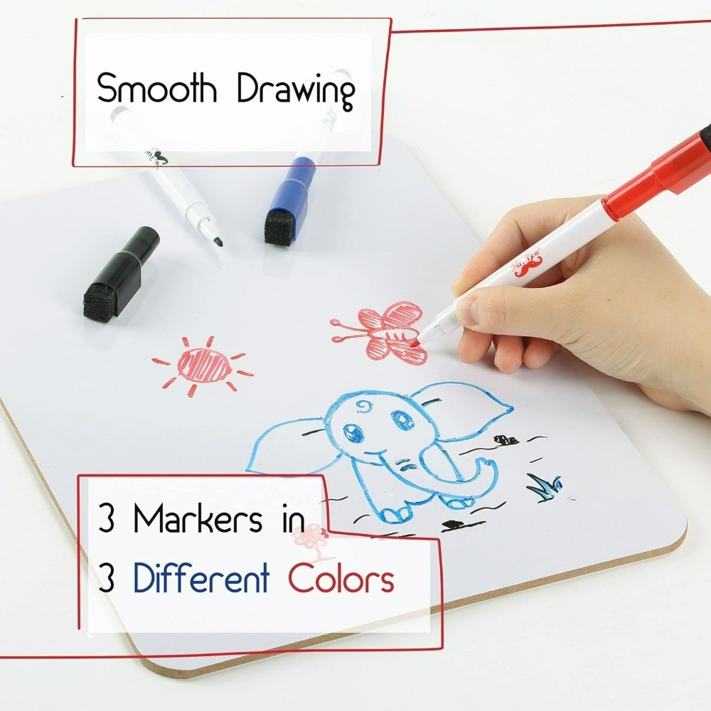 Double Sided Small Dry Erase Board 11.75 x 8.9 Lapboard with 3 Markers for