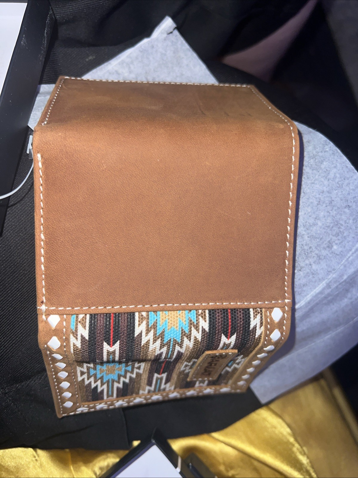 как выглядит Ariat Mens Leather Wallet Brown Trifold фото