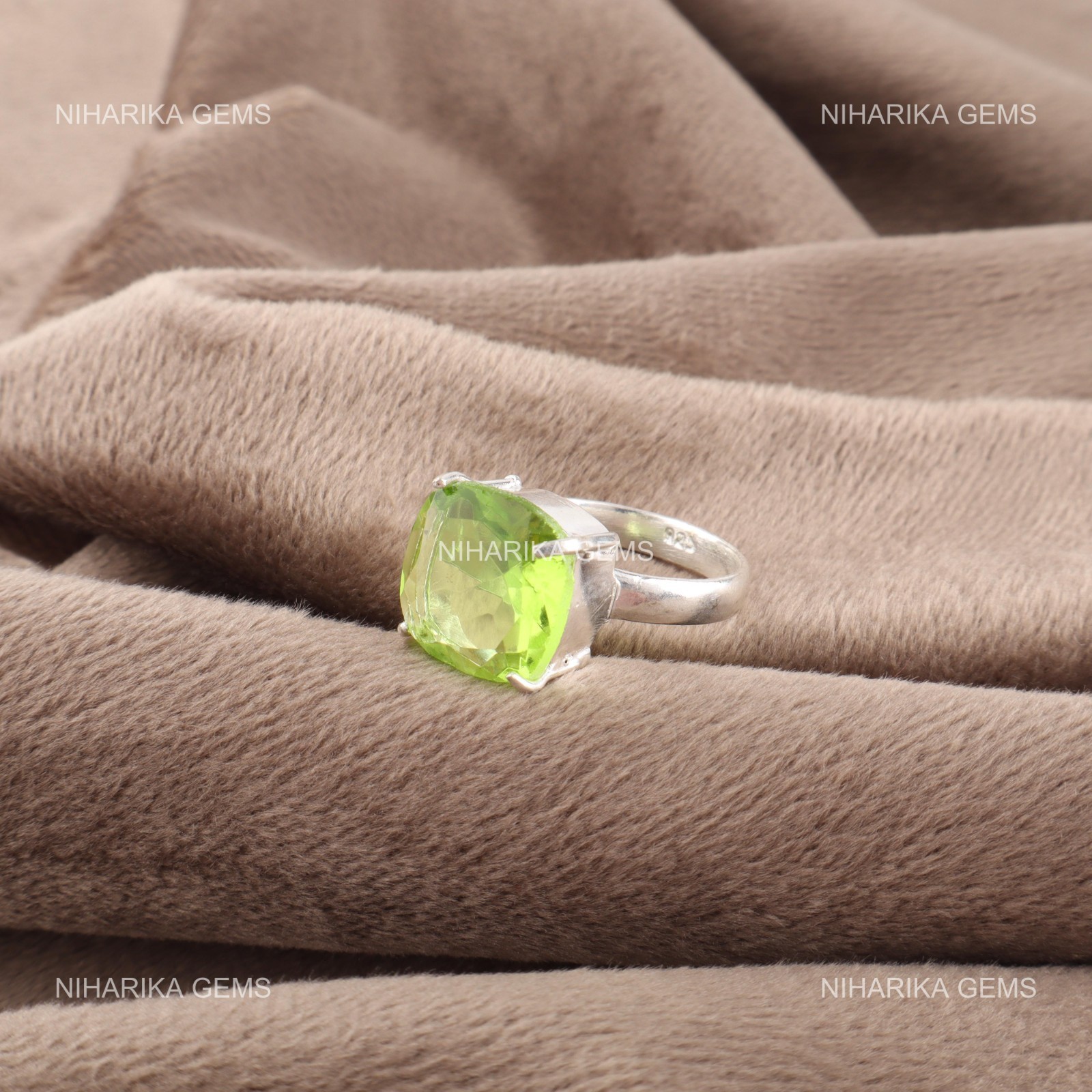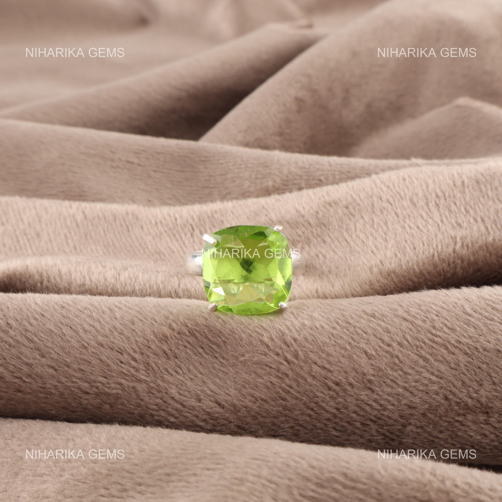 как выглядит Cushion Natural Peridot Sterling Silver Promise Solitaire Birthday Ring Jewelry фото