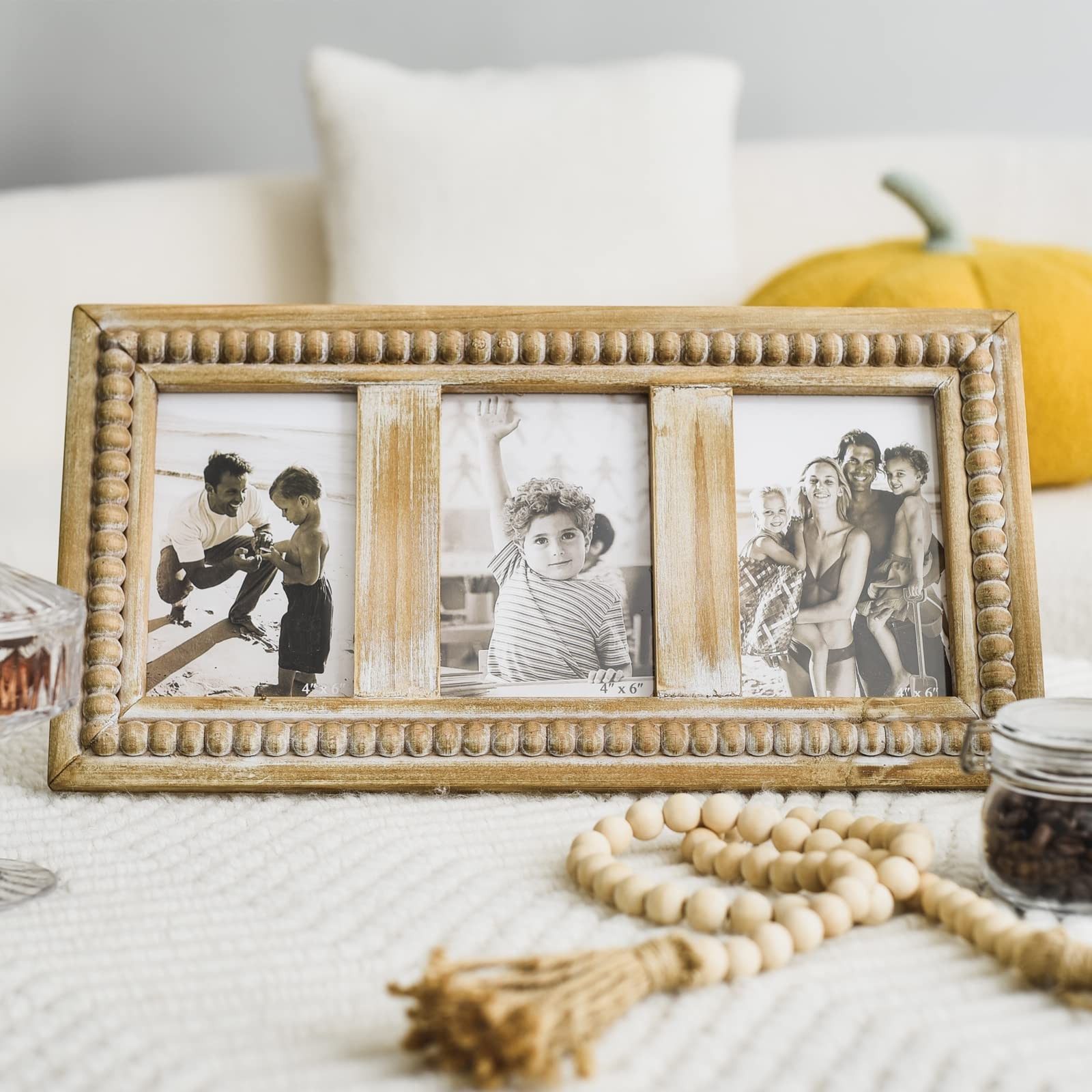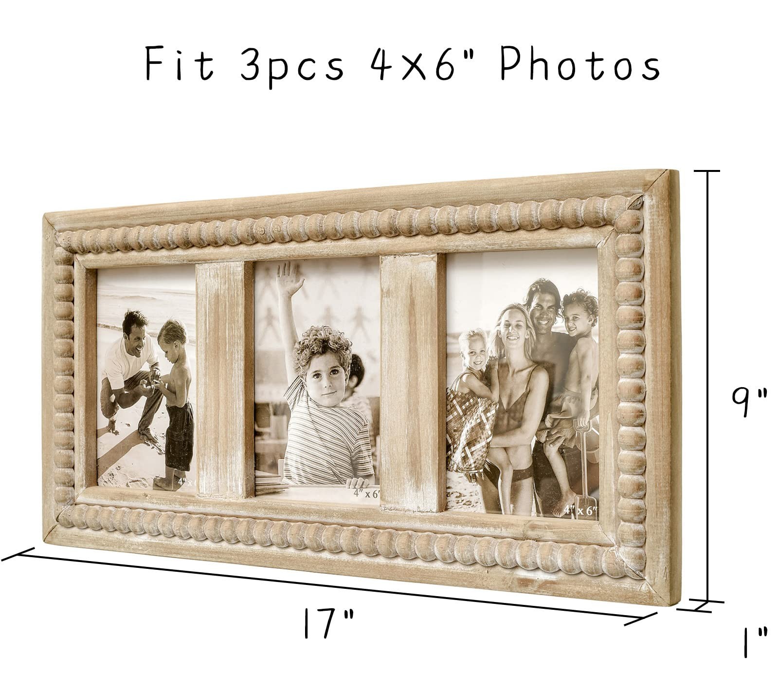 Rustic Distressed Picture Frames Collage with Decorative Beads, 3 Opening 4x6...