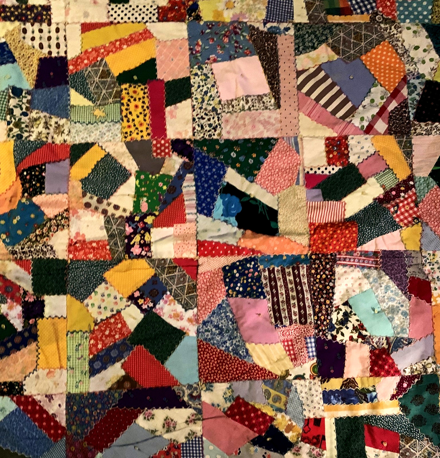 Great Vintage Crazy or Patchwork Quilt Bedspread 72" by 87"