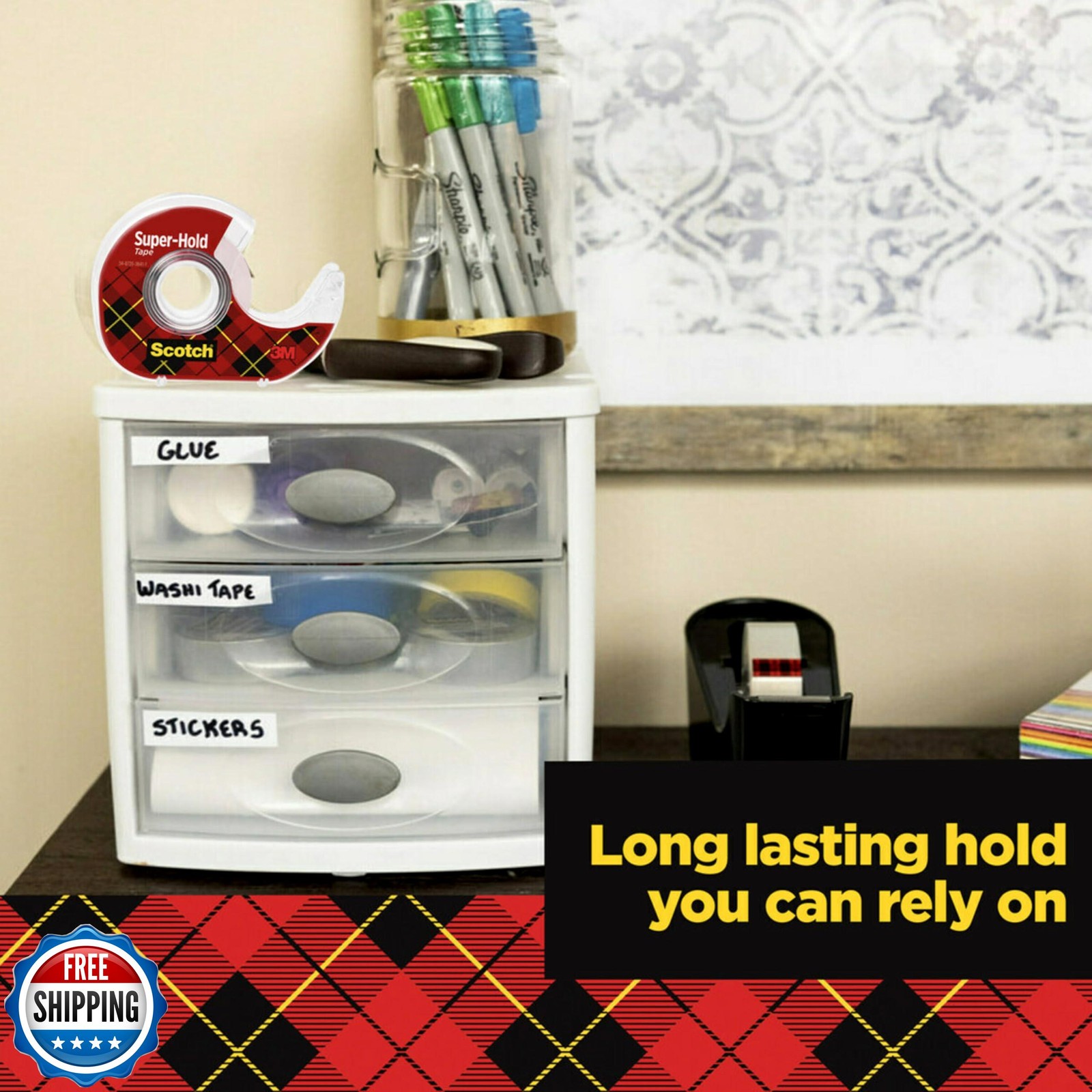как выглядит Scotch Super Hold, Transparent, Clear Glossy Finish, 4 Tape Rolls фото