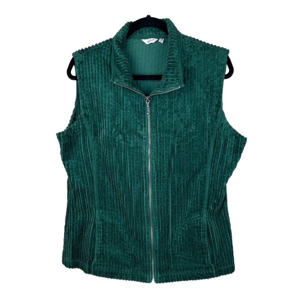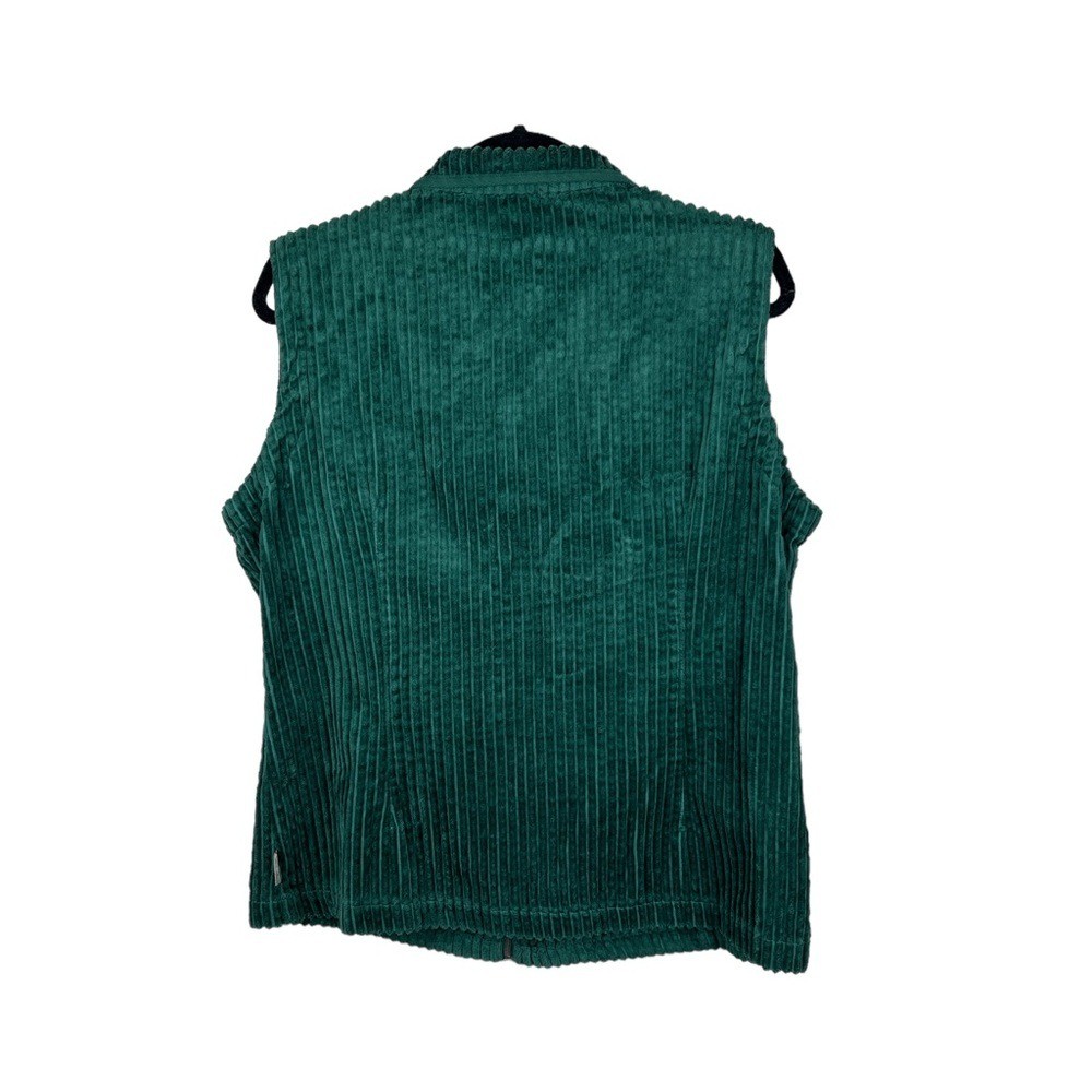 Woolrich Women's Green Corduroy Ribbed Zip UpLightweight Sleeveless Vest Sz L