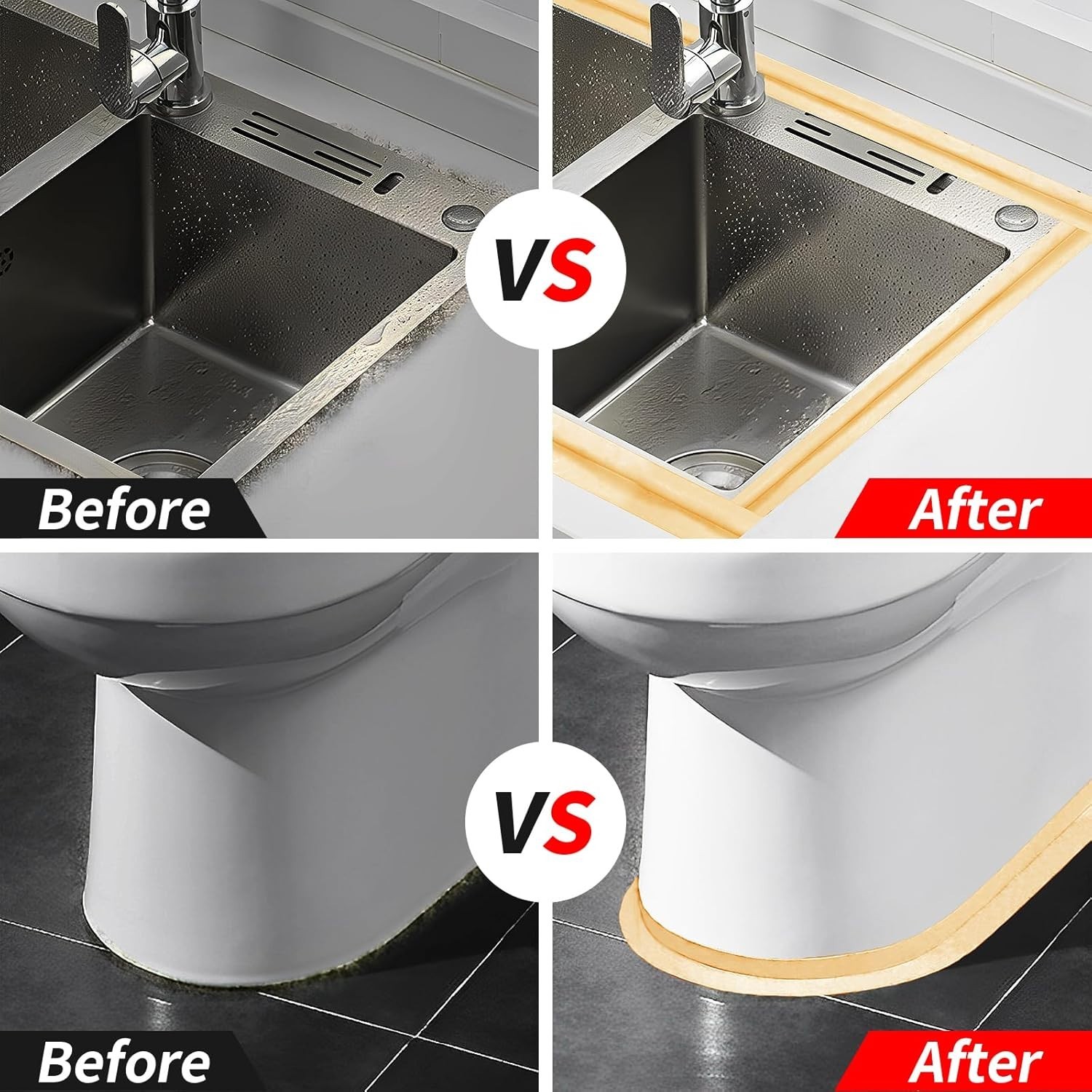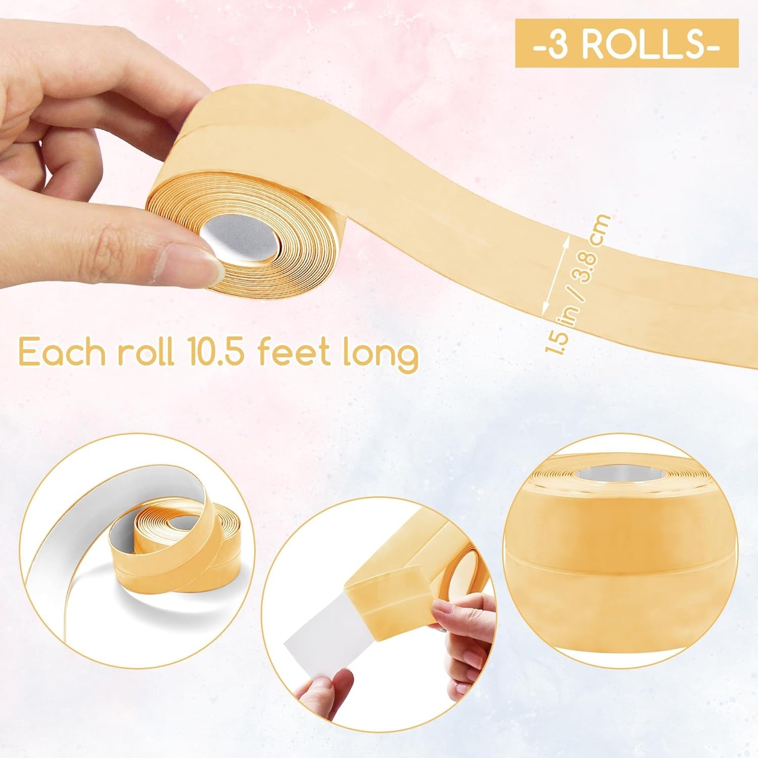 3 Rolls 10.5 Feet Caulk Tape Toilet Caulking Strip Self Adhesive Bathroom Sea...