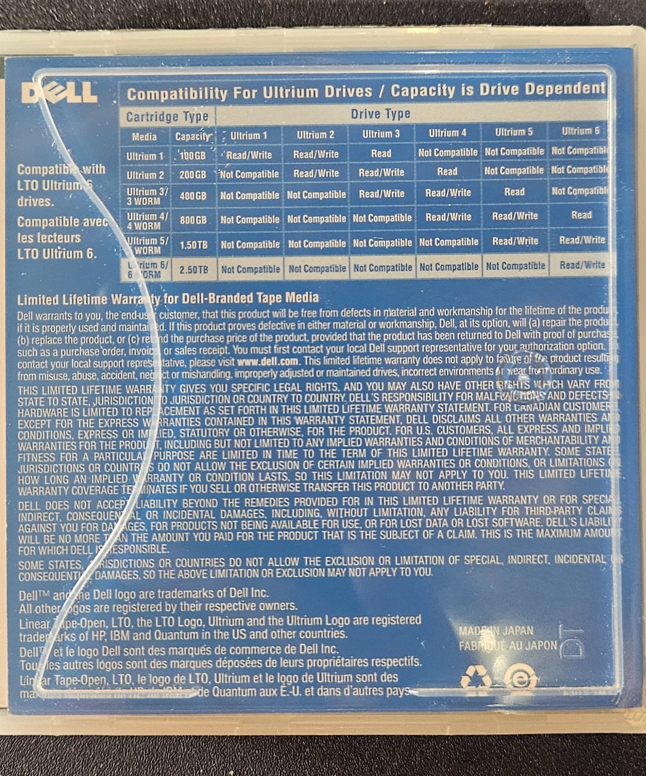 Dell 2.50TB / 6.25TB LTO Ultrium 6 Data Cartridge- 3pks - NEW