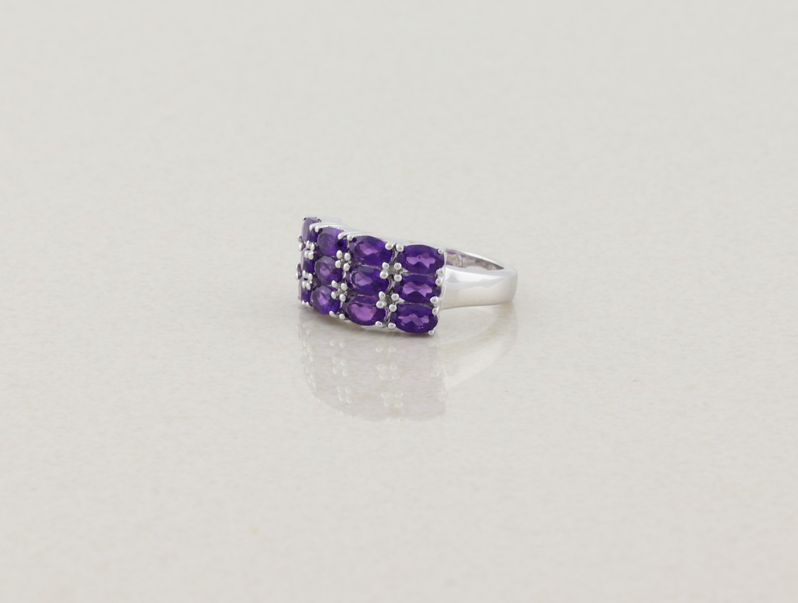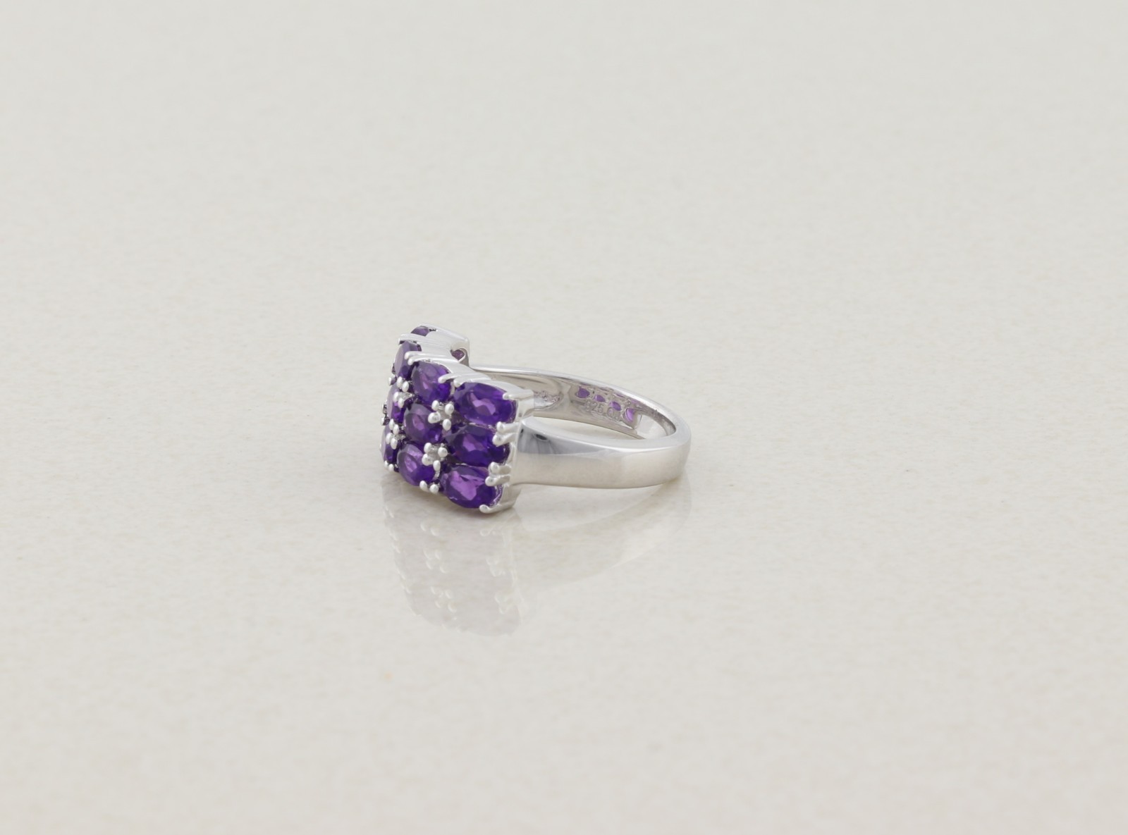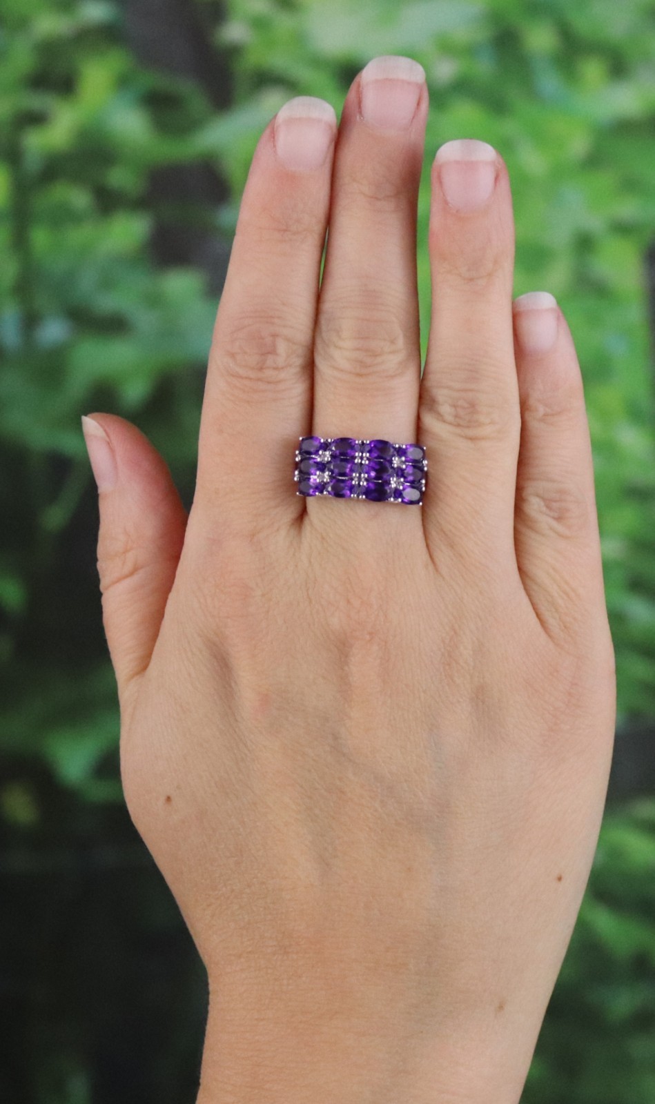 как выглядит Sterling Silver Natural Amethyst Three Row Band Ring size 7 1/4 фото