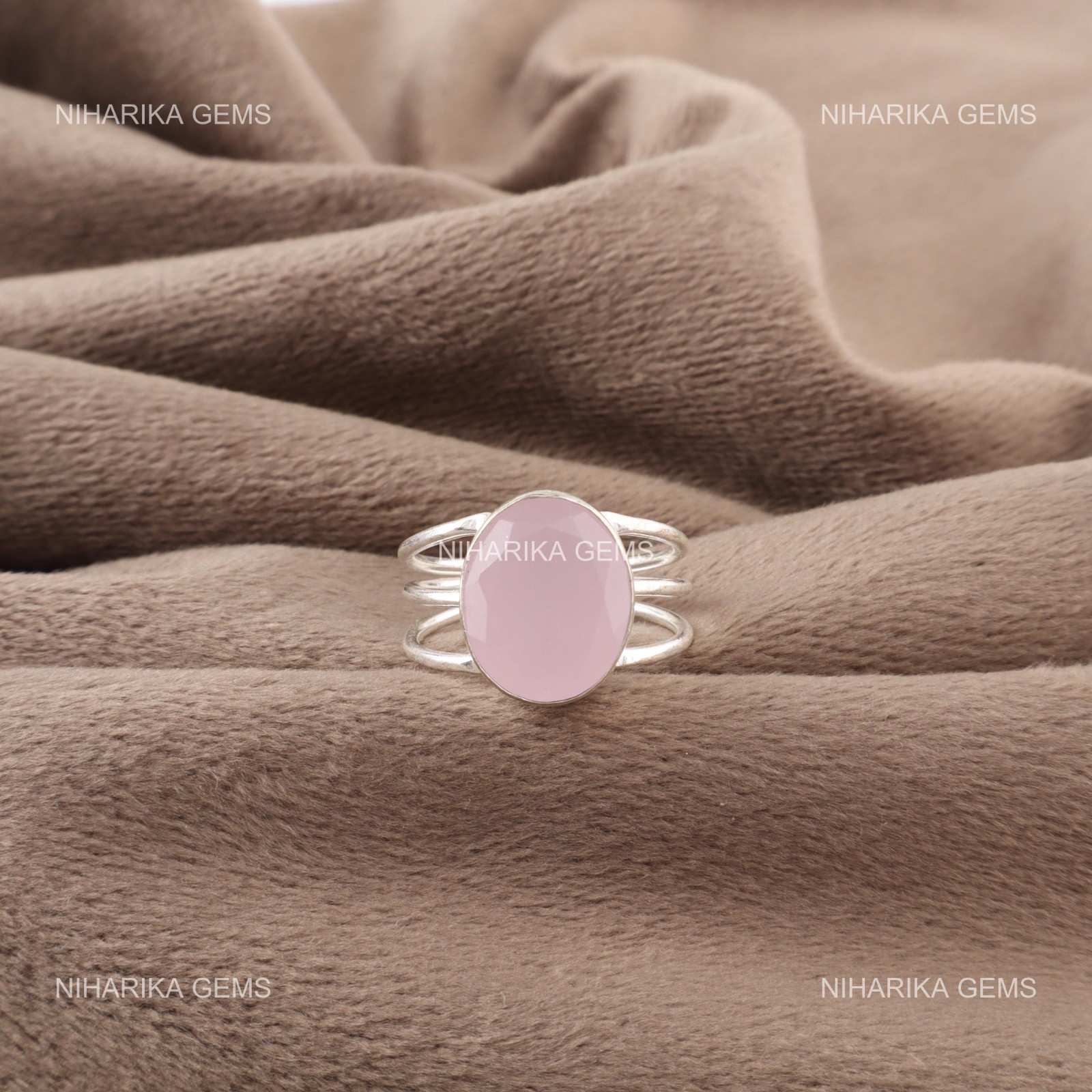 как выглядит 925 Sterling Silver Oval Natural Rose Chalcedony Solitaire Elegant Ring Jewelry фото