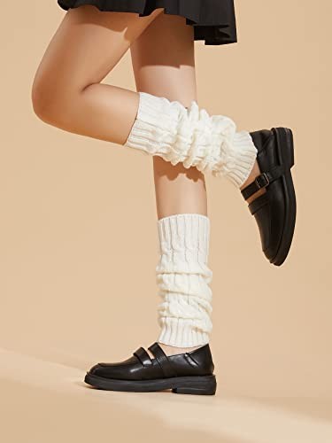 Women's Solid Cable Knit Leg Warmers Knitted Crochet Winter One Size White