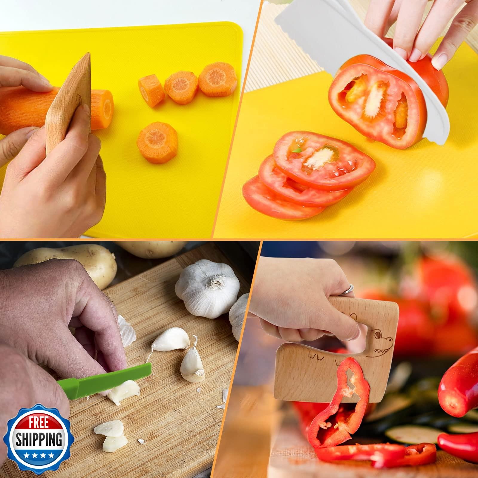 RISICULIS 11 Pieces Wooden Kids Kitchen Knife, Kids Kitchen Set I