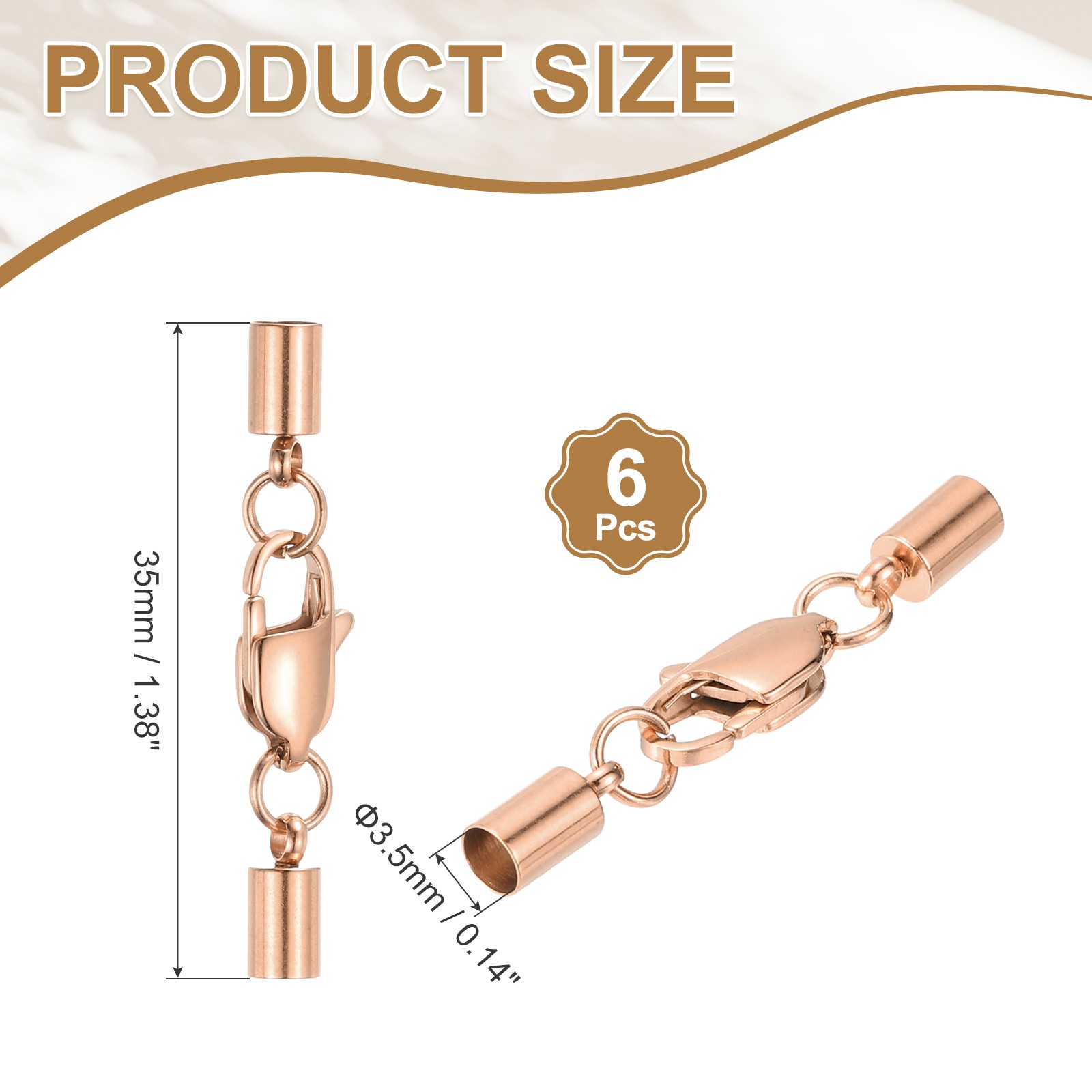 как выглядит 6Set 3.5mm Leather Cord End Caps with Lobster Claw Clasps Connector, Rose Gold фото