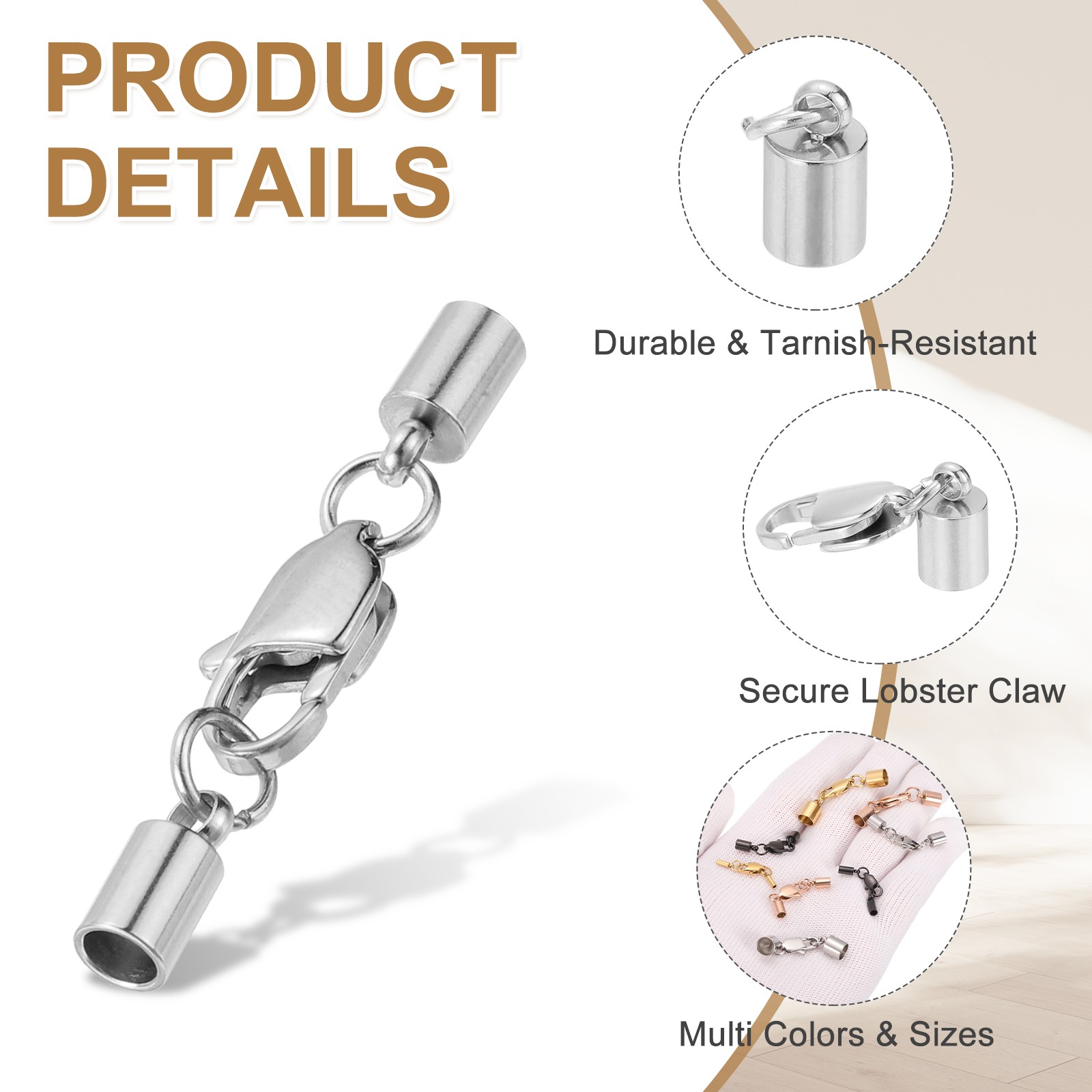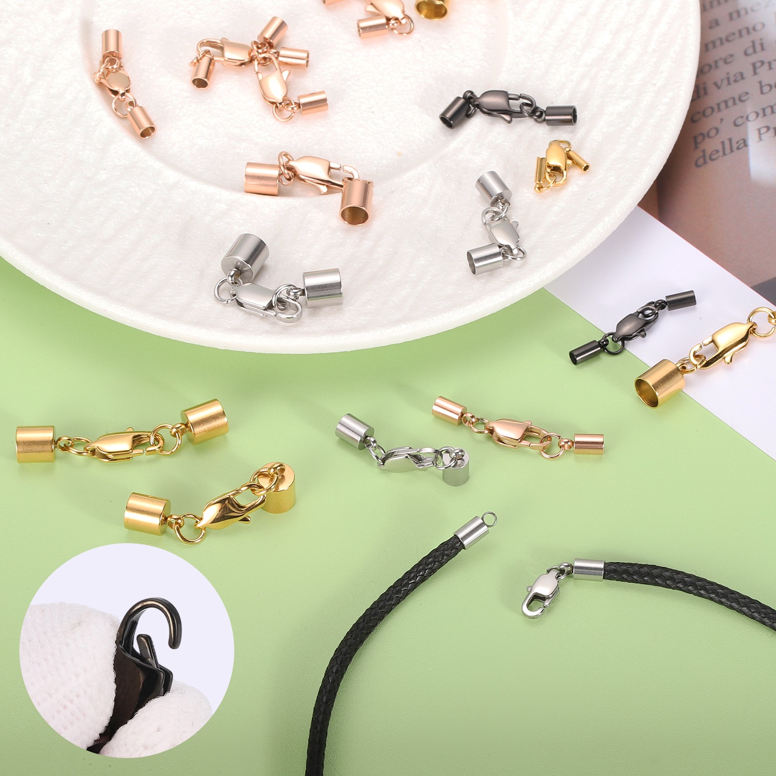 как выглядит 6Set 3mm Leather Cord End Caps with Lobster Claw Clasps Connector, Silver фото
