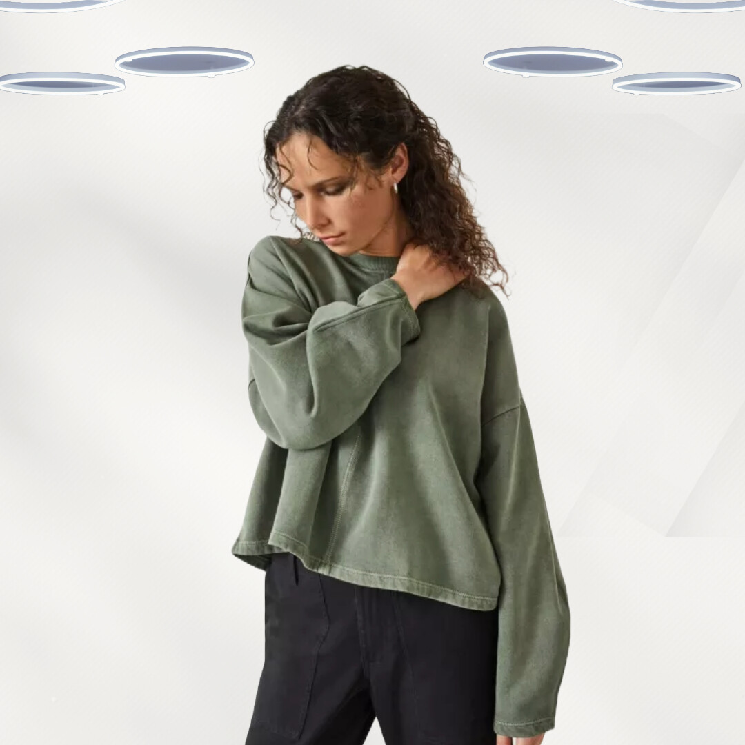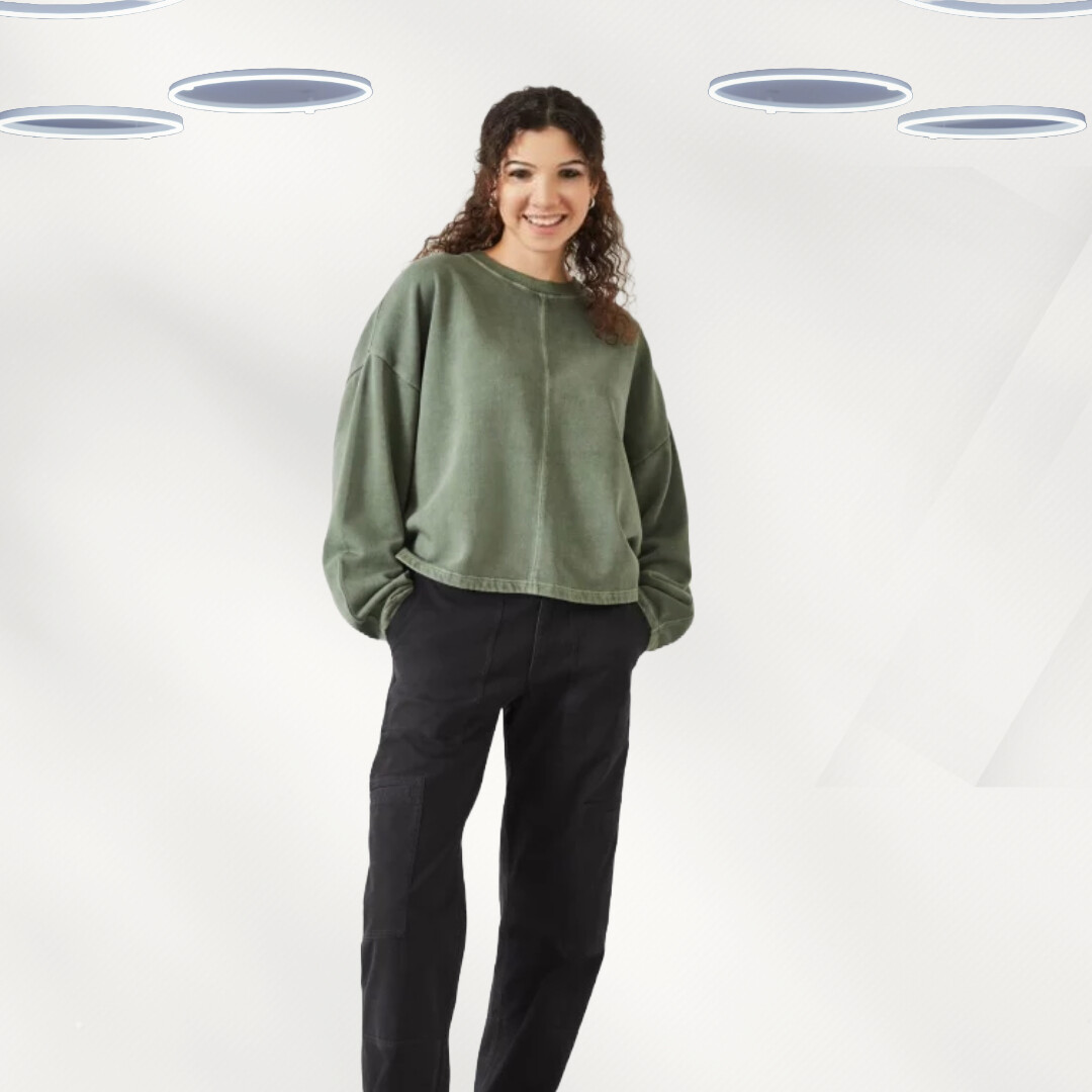 Ex Hush Women's Sweatshirt Green Long Sleeve Seam Detail Cotton Defect