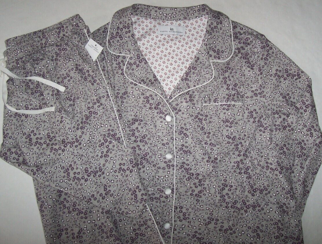 NWT Karen Neuburger GRAY/PURPLE/WHITE DITSY FLORAL Jersey Pajama Set Women's XL