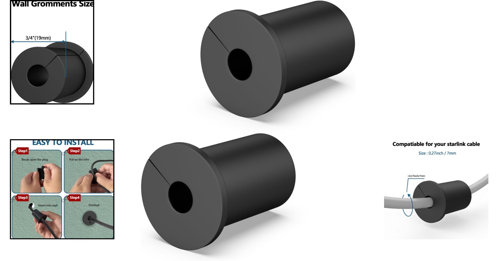 Unit Quantity: 2PCS 3/4 inch starlink Wall Grommets for Cables