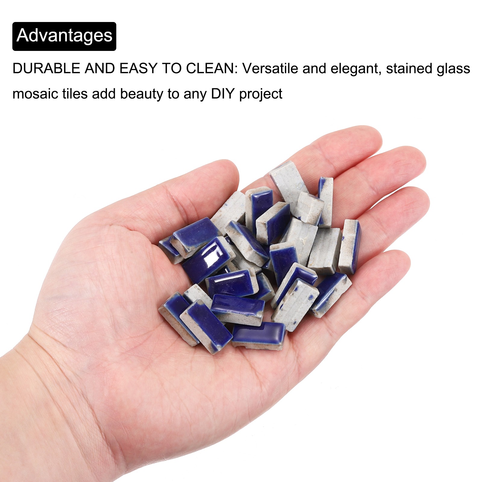 200g Ceramic Mosaic Tiles for Crafts Bulk, Rectangle Dark Blue Ceramic Tiles