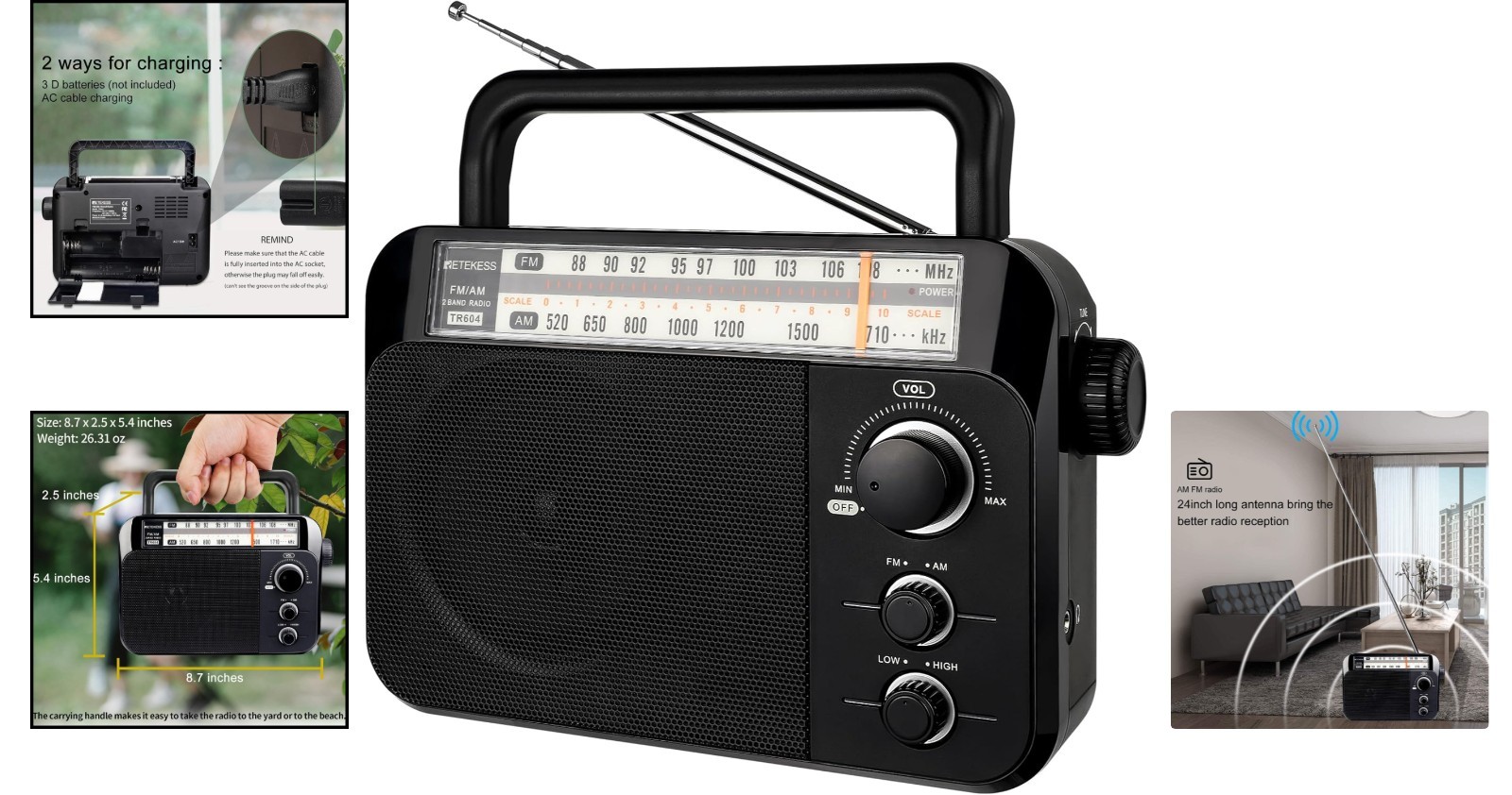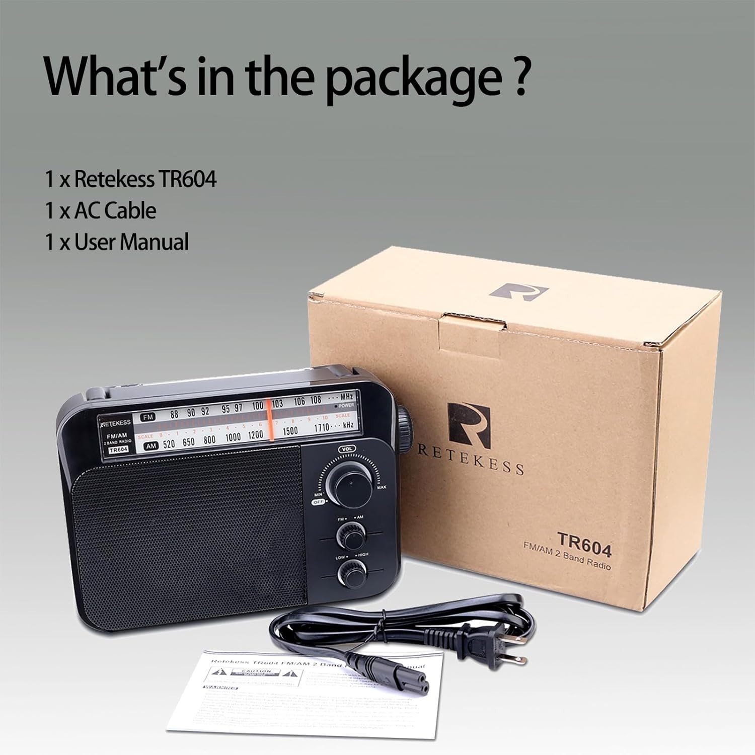 Retekess TR604 Portable AM/FM Radio - User-Friendly D Battery AC Powered