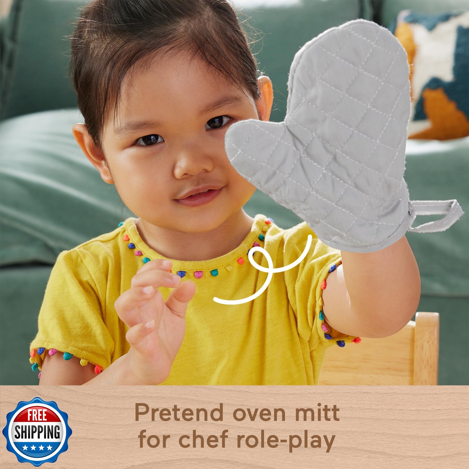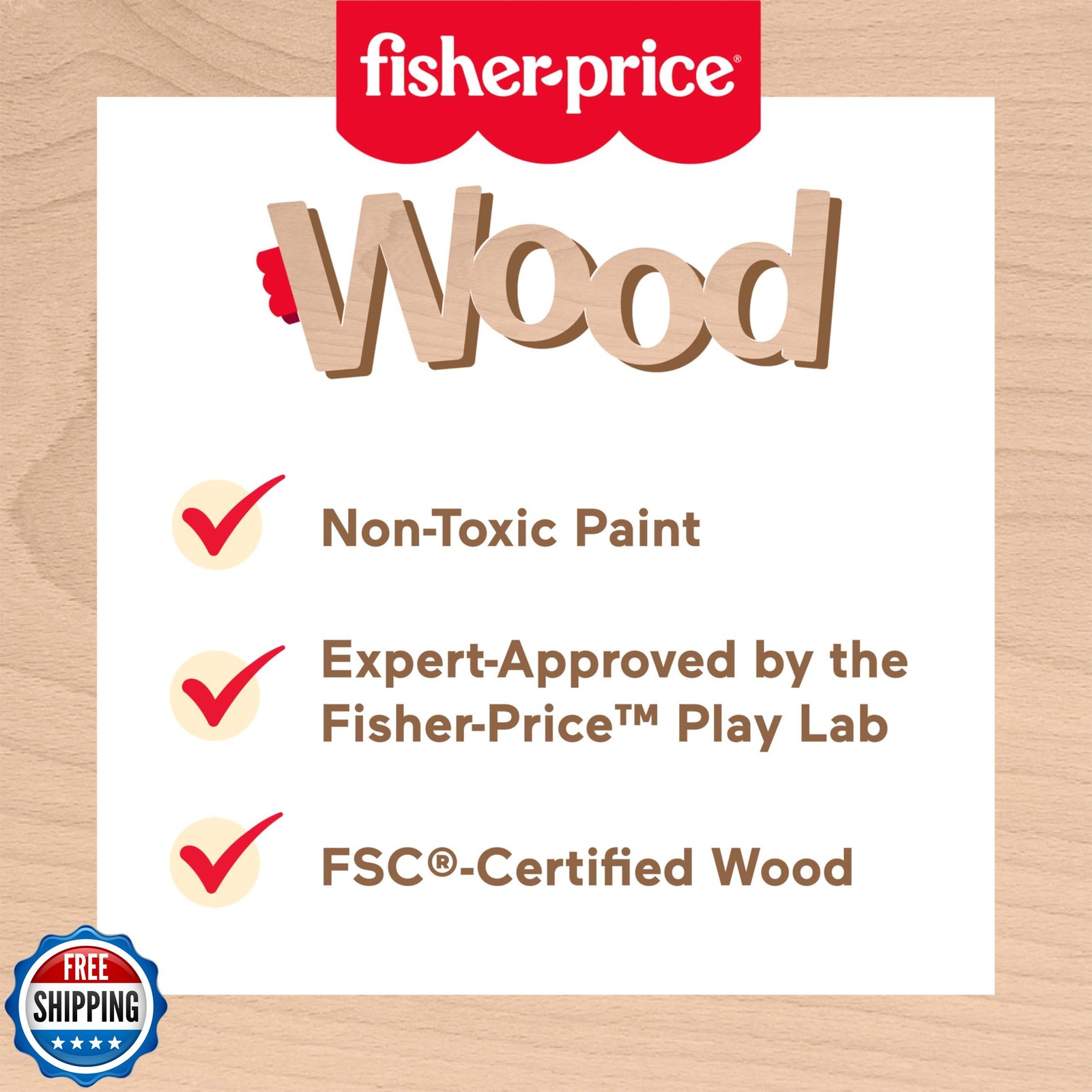 Fisher-Price Wood Kitchen Pretend Play Toy Pots and Pans Set, 19-