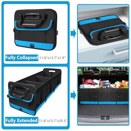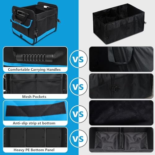 Trunk Organizer for Car, Car Storage Organizer with 2 adjustable straps, Blue