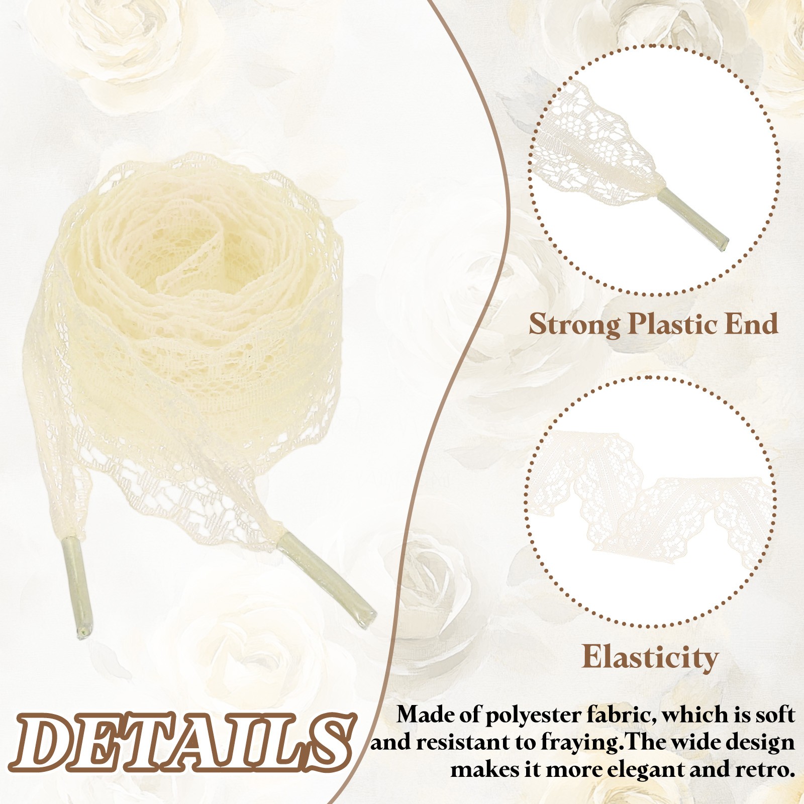 как выглядит 2Pairs Flat Laces Shoelaces, 2.2CM Wide 140CM Length Lacy Shoe Laces, Beige фото