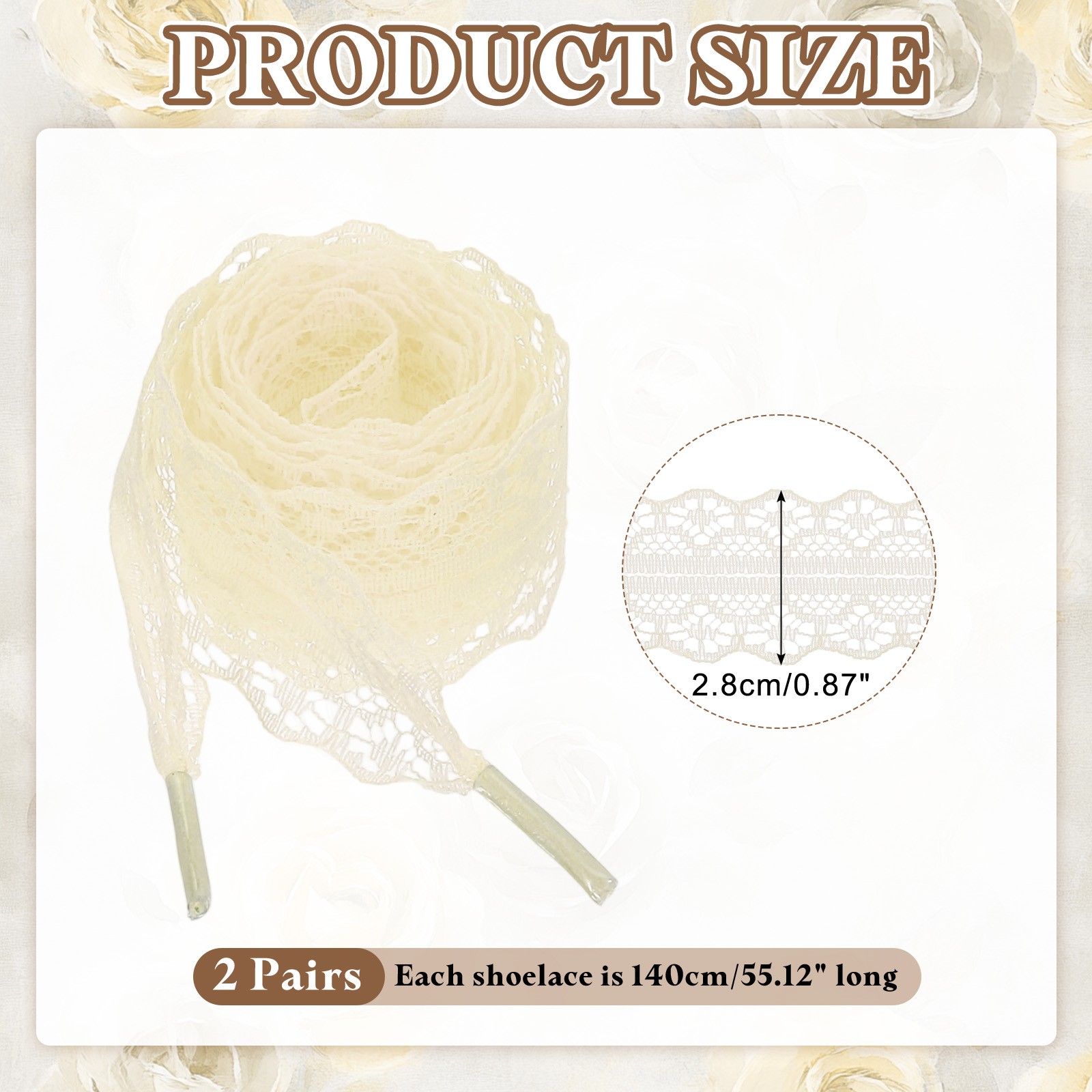 2Pairs Flat Laces Shoelaces, 2.2CM Wide 140CM Length Lacy Shoe Laces, Beige