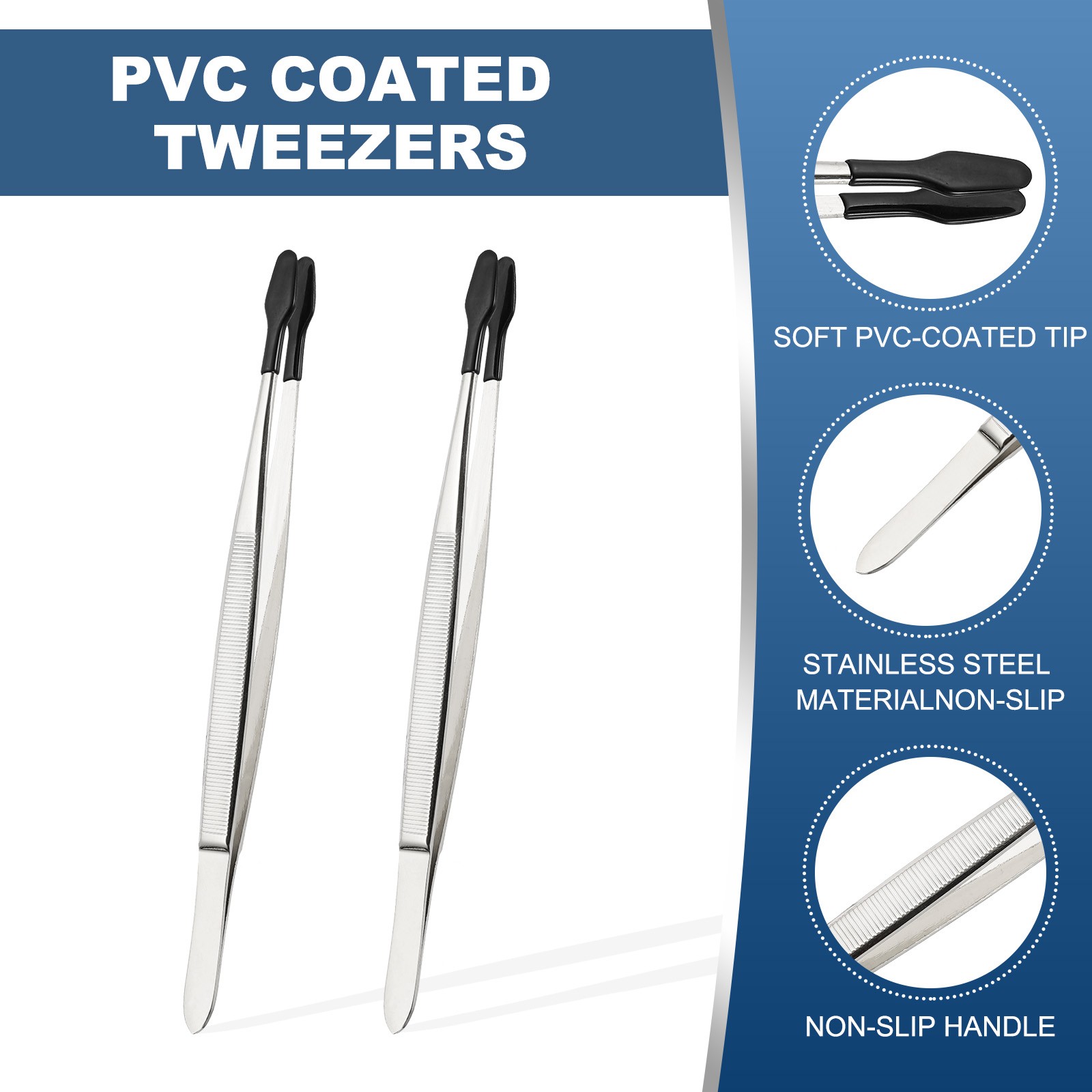 Craft Tweezers with Rubber Tips, 2 Pcs PVC Coated Tweezers Set, Black 5.9