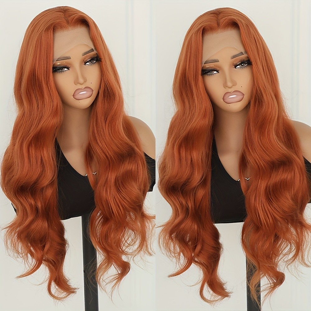 Ginger Orange Long Wavy Lace Front Wigs Pre Plucked Hairline Heat Resistant Soft