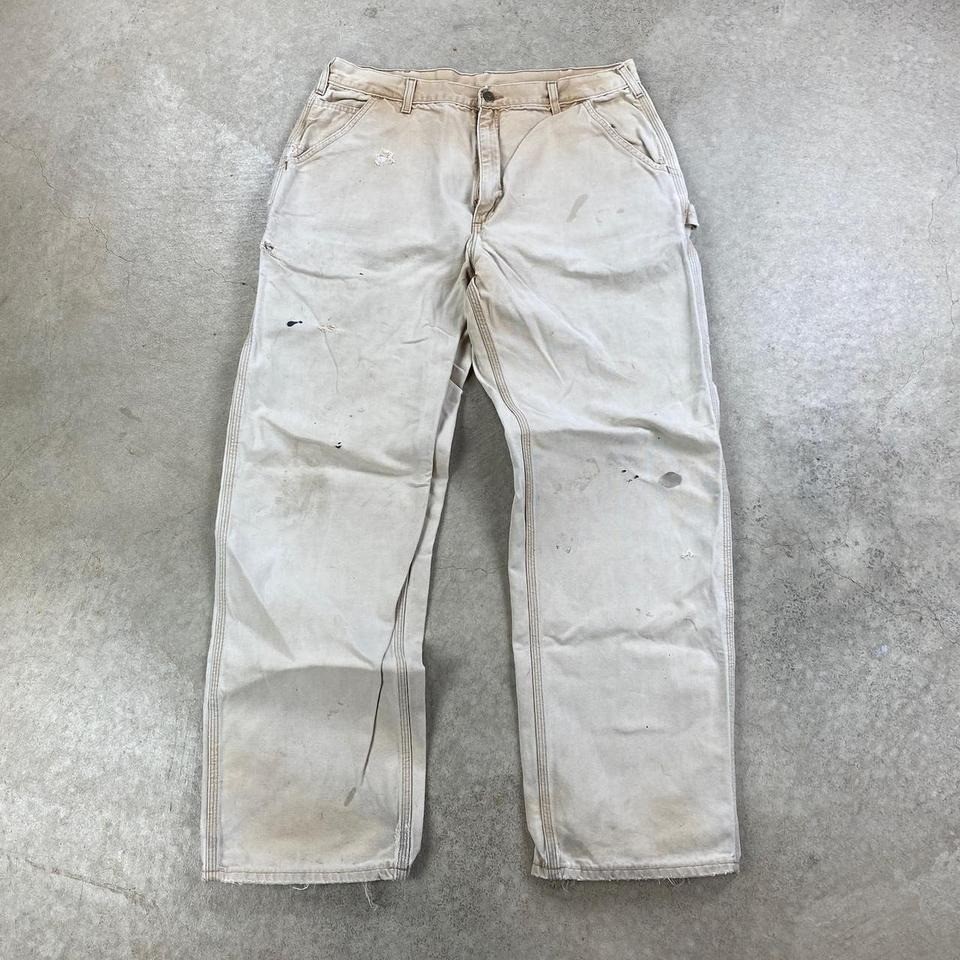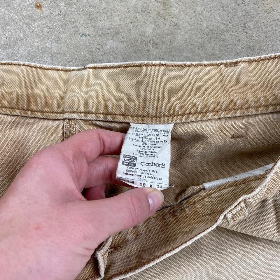 как выглядит Vintage 90s Carhartt Carpenter Pants Size 38x34 Faded Tan Heavy Canvas Workwear фото