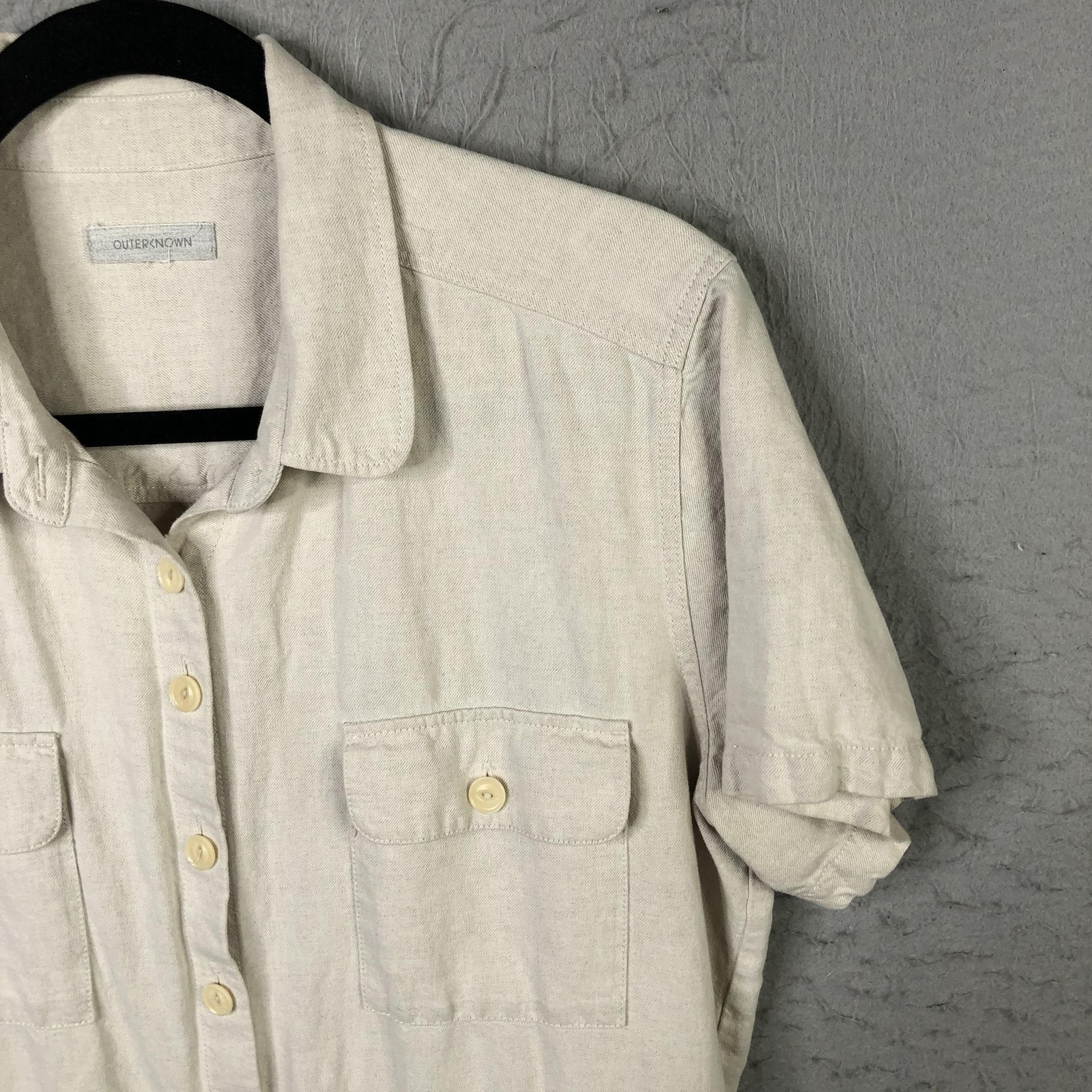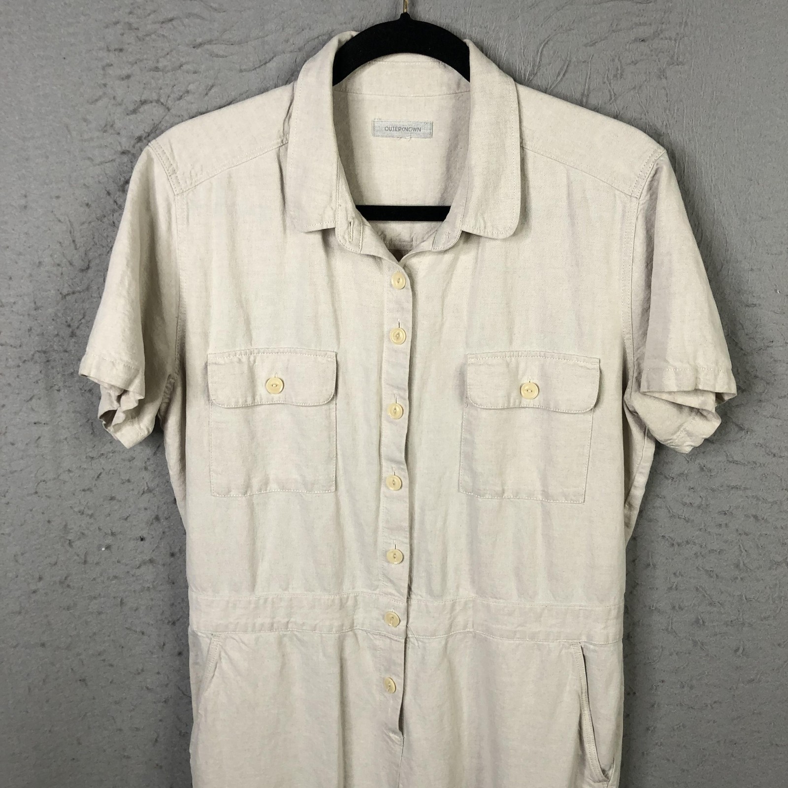 как выглядит Outerknown Jumpsuit Womens Medium Beige Cotton Linen Utility Twill Button Front фото